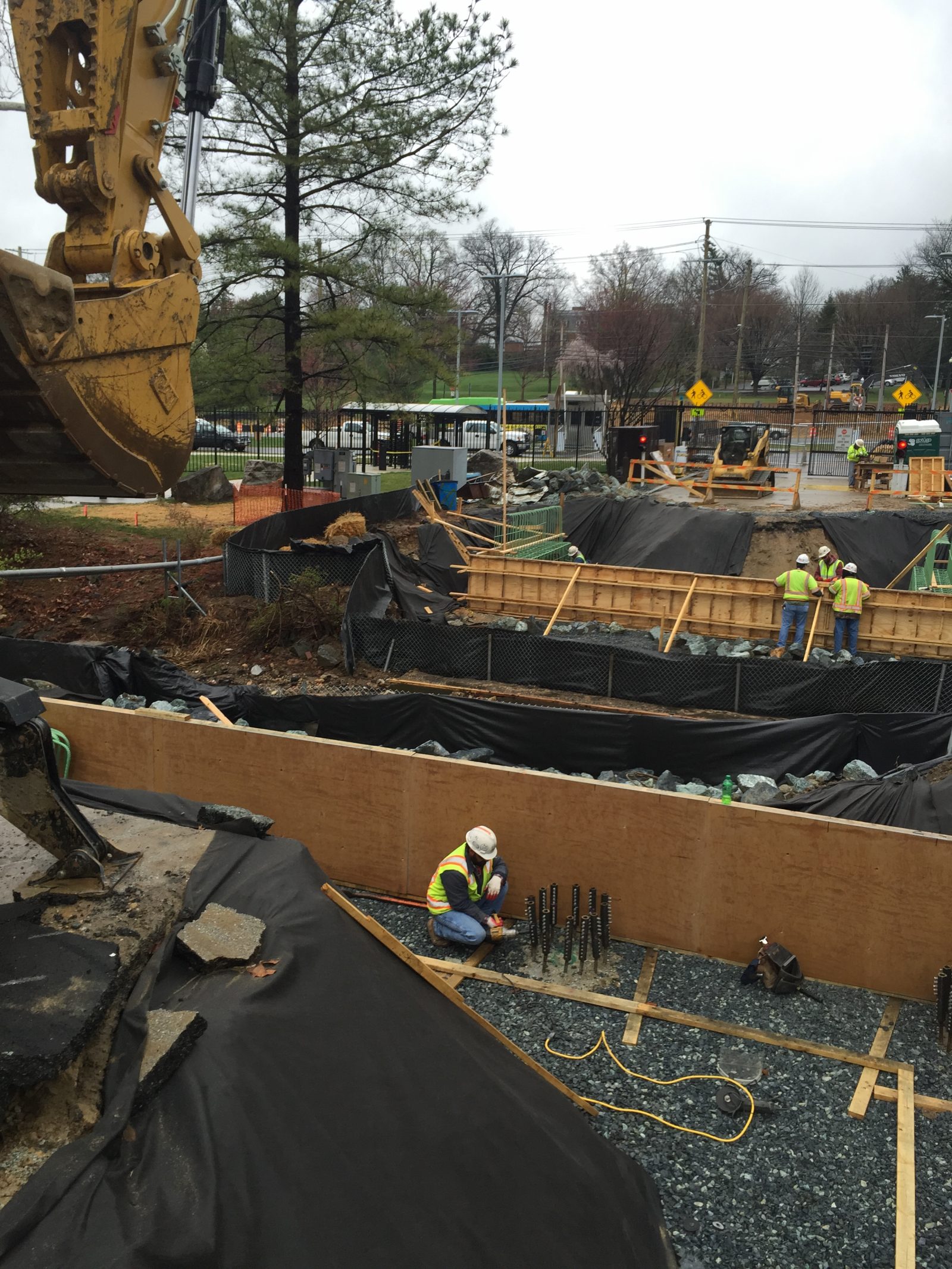 • Reinforced, cast-in-place concrete abutments supported on drilled-shaft foundations, which we chose to minimize noise and ground vibration that could affect adjacent research laboratory facilities