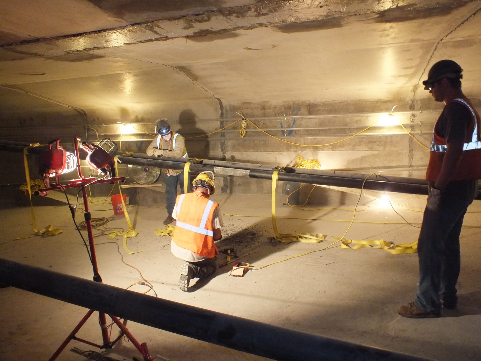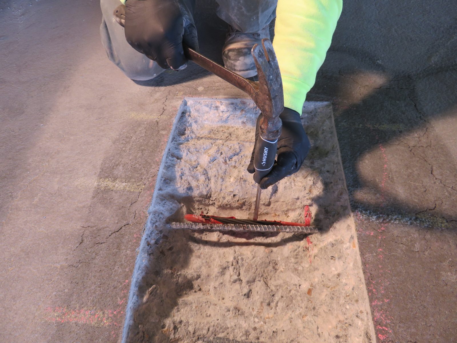 - Examining the tendons in exploratory openings. This work requires assistance from experienced contractors to make openings in the concrete to expose the tendons. These contractors will also restore the grease, sheathing (if present), and concrete after the examinations are complete.