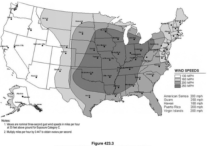 • Debris hazards: Structural design must consider other hazards such as wind-borne debris from other structures, towers, trees, vehicles, or temporary classrooms.
