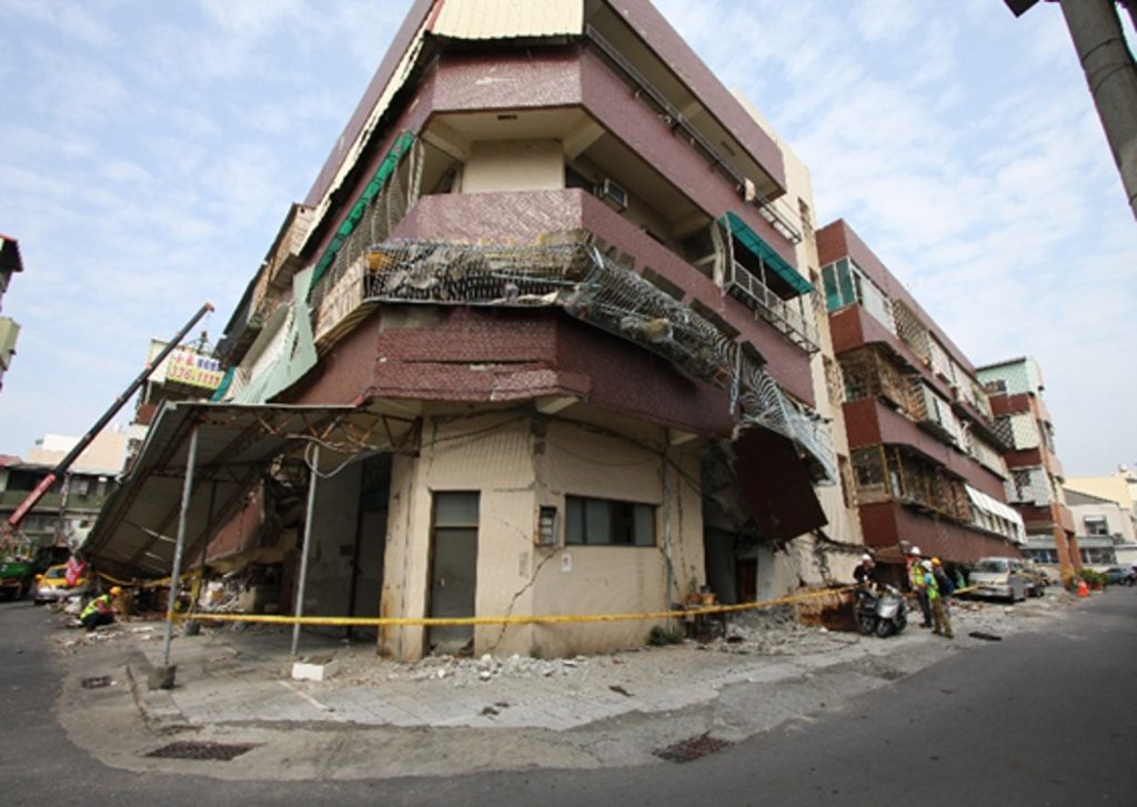Soft story collapse in non-ductile concrete building.