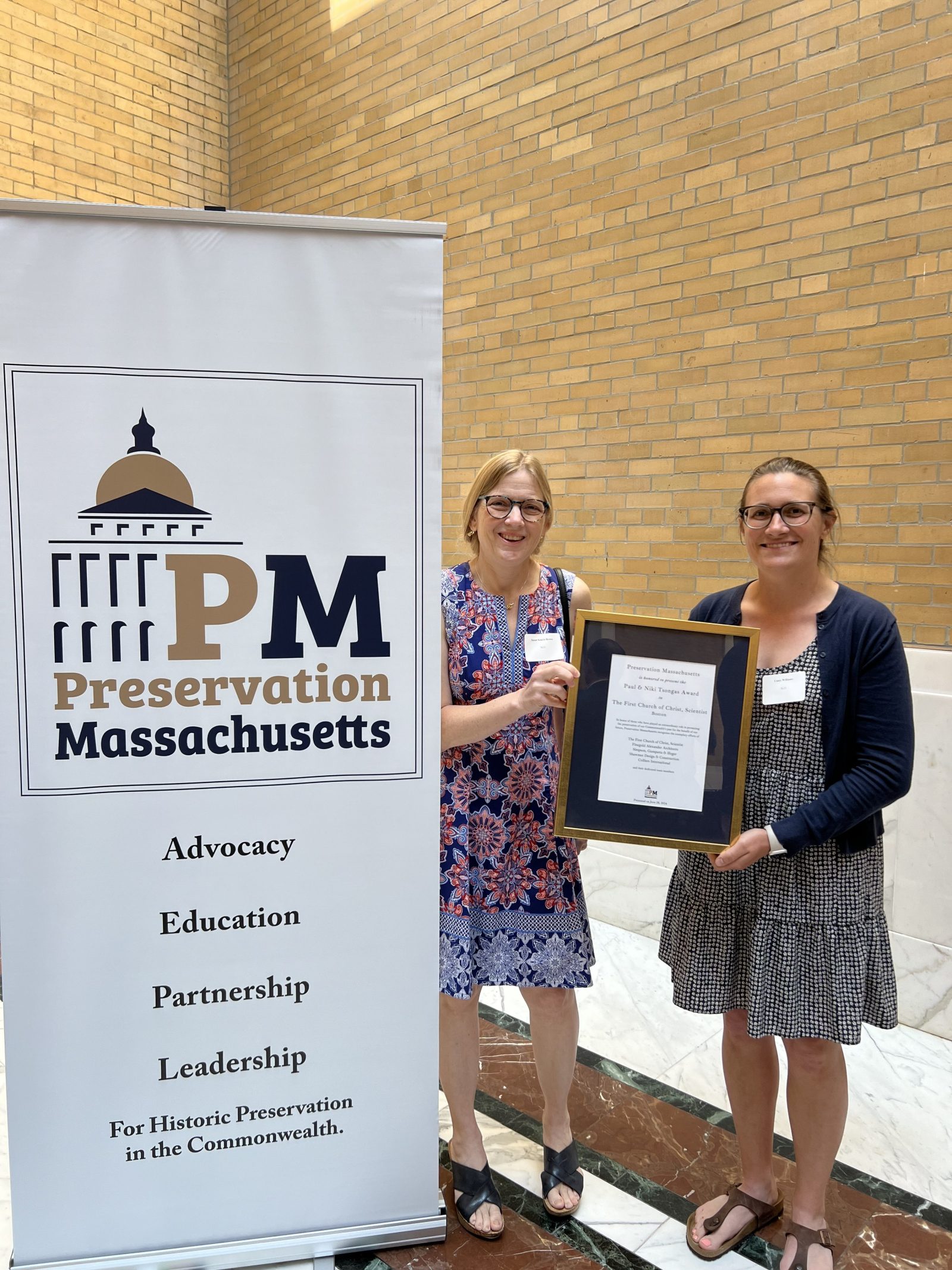 SGH's Susan Knack-Brown and Casey Williams received the Paul and Niki Tsongas Award for preservation work at The First Church of Christ, Scientist.