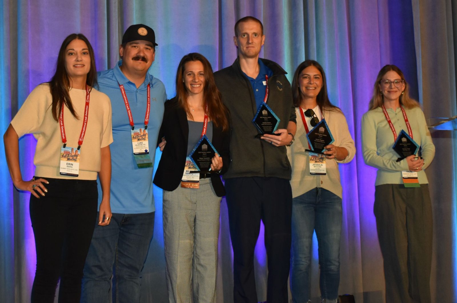 The Sealant, Waterproofing & Restoration Institute (SWR Institute) recently recognized Simpson Gumpertz & Heger (SGH) Senior Project Manager Megan Toumanios as a NextGen Leader. This honor highlights emerging professionals under the age of forty who have demonstrated exceptional technical expertise, leadership, and commitment to advancing the sealant, waterproofing, and restoration industry. Megan accepted the award at the SWR Institute Fall Technical Meeting in Boston, MA, on 7 October 2025, where she also served as emcee for the event.