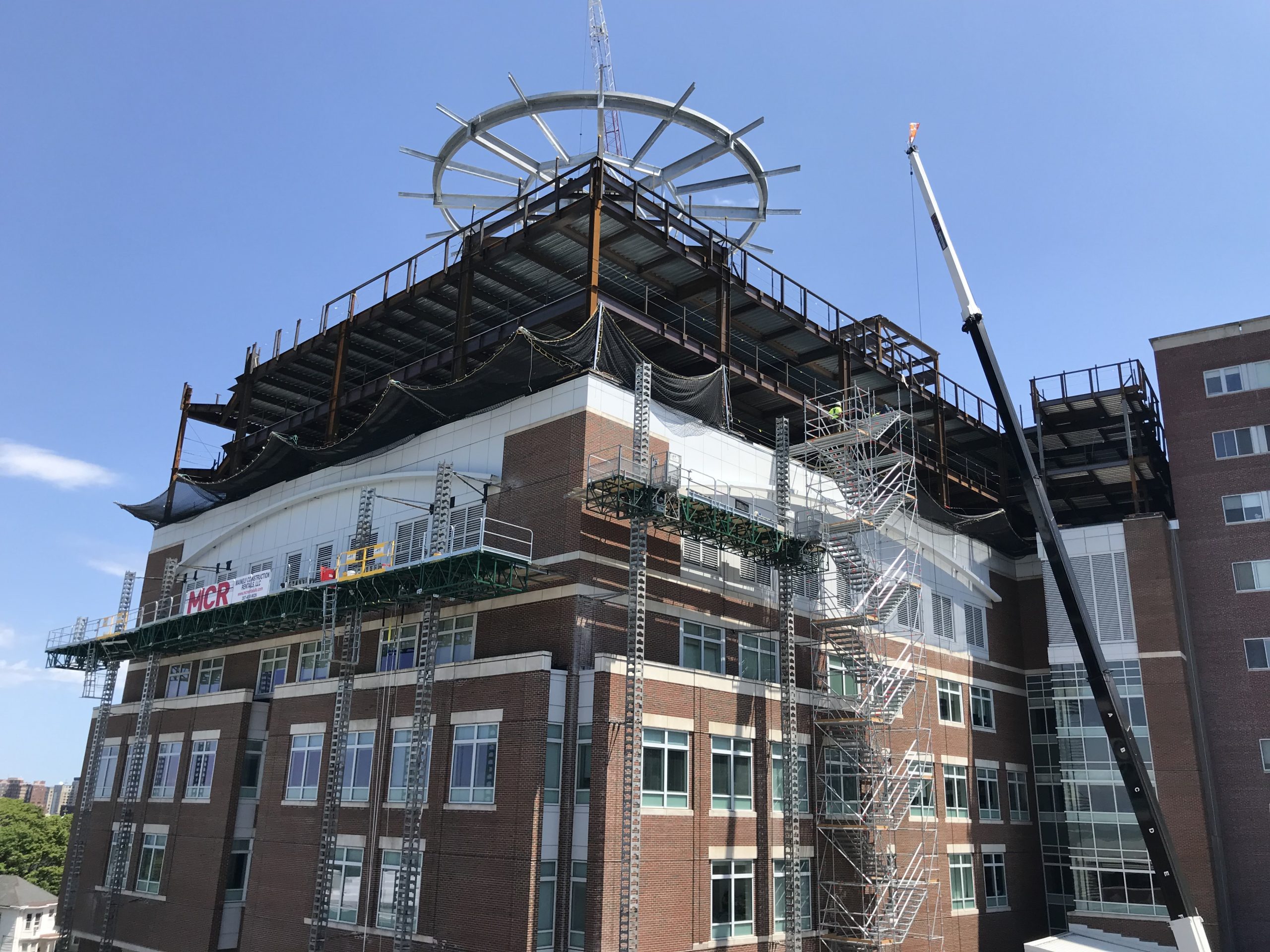 SGH accepted the challenge, developing a structural design for the new addition and heliport that required only a few base building columns to be strengthened. This was critical to the project’s success, since the lower four stories of the Coulombe Family Tower remained occupied during construction and substantial work could have halted the heliport plan. Constructing two new floors and a heliport above an occupied hospital required careful planning to merge the two structures and create a watertight structure, while also limiting disruption to patients and staff. We carefully considered serviceability, constructability, and durability of the structural and building enclosure systems to help the hospital meet its current and future demands.