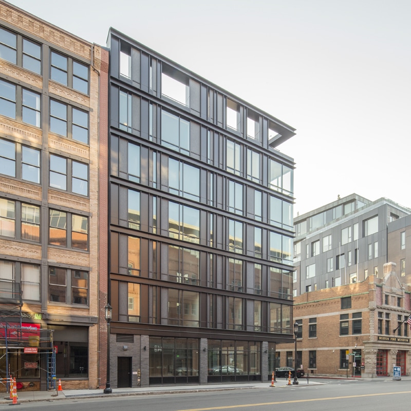 With industrial design features, 10 Farnsworth Street celebrates the history of its Fort Point neighborhood. The six-story building houses ground-level retail, eight loft-style condominiums sharing access to a rooftop amenity deck, and one penthouse unit with a private roof deck. SGH consulted on the building enclosure design and helped the project team develop flood mitigation strategies.