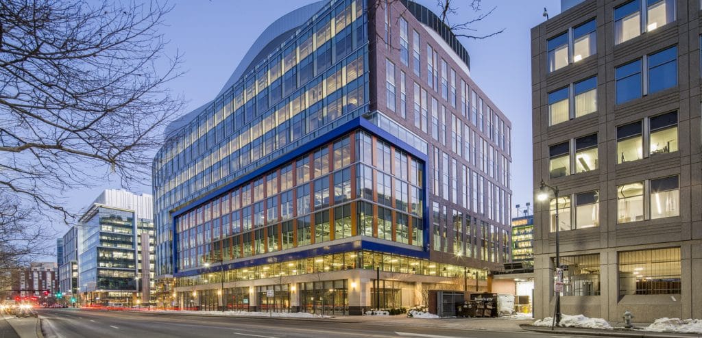 The ten-story building at 100 Binney offers attractive, leasable space to the tech and biotech companies moving into the growing Kendall Square area. The mid-rise structure nestles into the existing Cambridge neighborhood, while the sweeping curtain wall brings a contemporary aesthetic representative of the sophisticated work going on inside. SGH consulted on the building enclosure design.