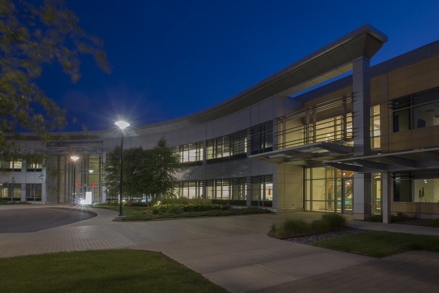With the best views of the surrounding site and reservoir, 175 Wyman Street became the architectural focus of the site. The building enclosure features a curved facade and cantilevered overlook. To maximize efficiency, Columbia Construction Company proposed to install the facade in prefabricated modules. The exterior walls feature a combination of metal panels, full-height curtain walls, low-e windows with sunscreens, and terra-cotta rainscreen panels. SGH assisted the architect by providing the following services: