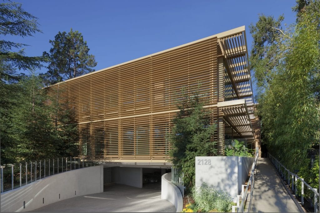 SGH collaborated with the design team to coordinate the structure with other systems in the modules. We designed the structural steel modules to form a three-dimensional space frame with infill plywood shear walls serving as the lateral load-resisting system. We also designed the cast-in-place concrete parking structure, which serves as a podium supporting the structural steel modules and a landscaped garden area with mature trees.