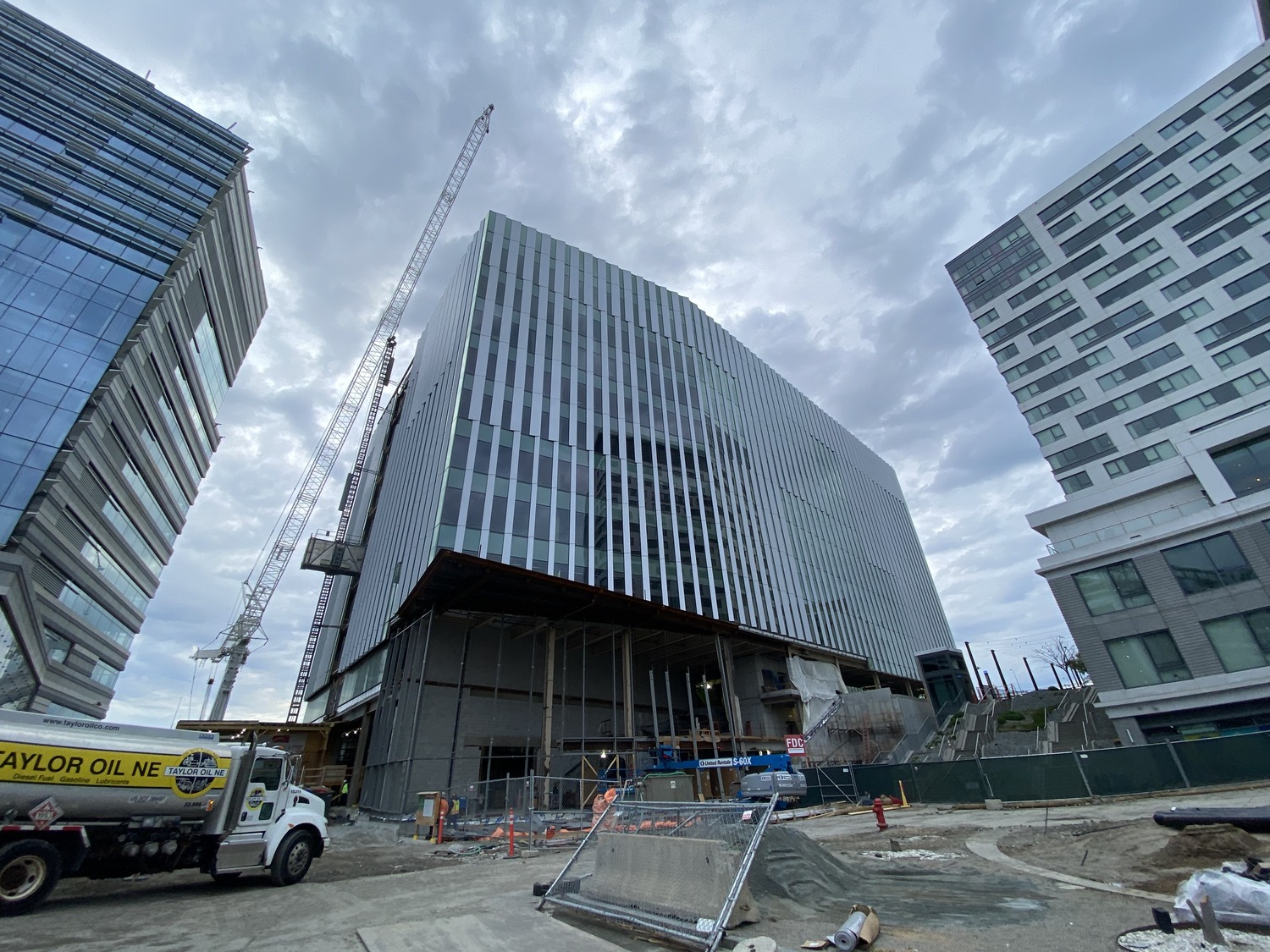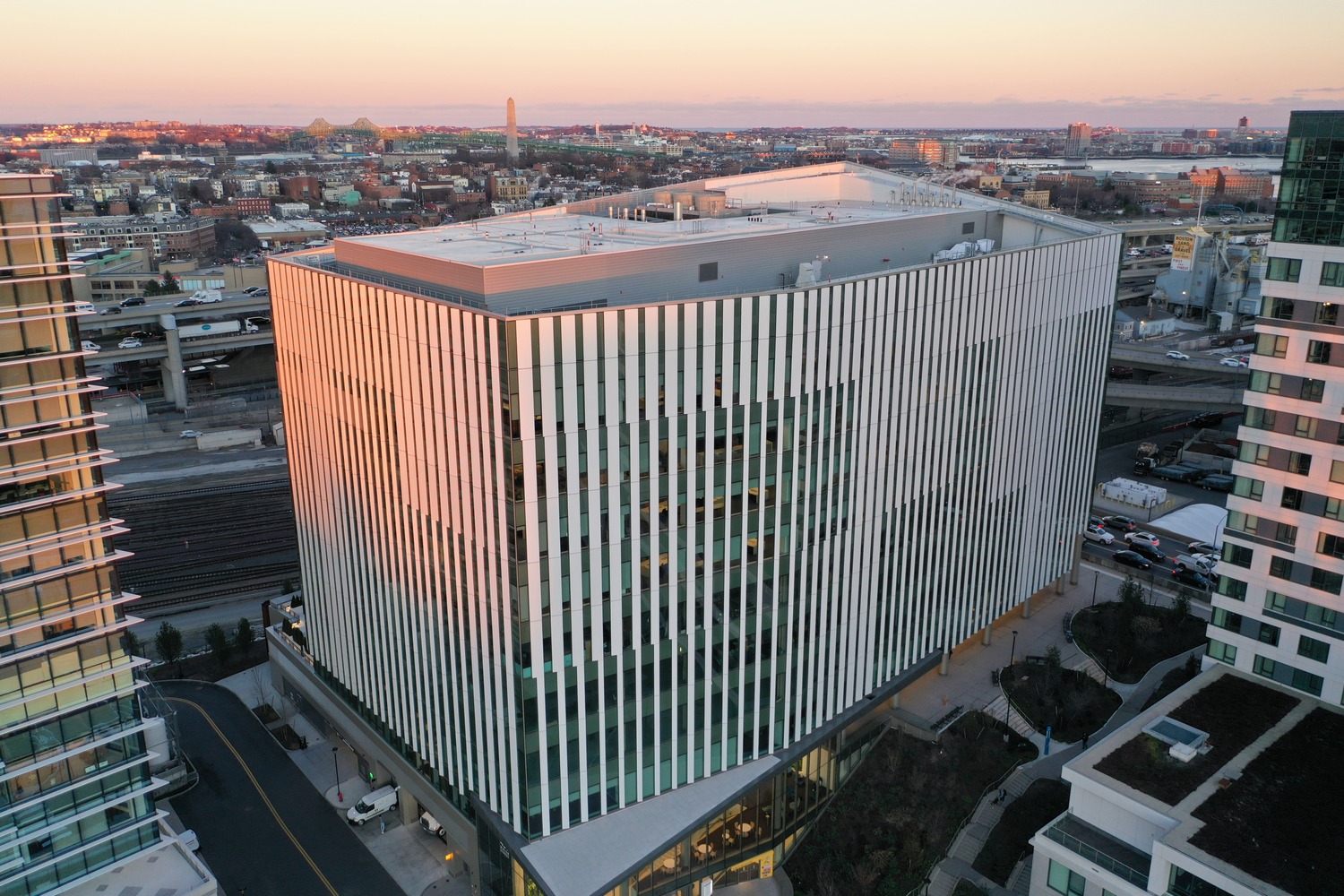 Formerly a railyard adjacent to Kendall Square, Cambridge Crossing is a forty‑three-acre mixed-use development. The new eleven-story building on Parcel H at 450 Water Street houses nine levels of life science office space above four levels of parking. SGH consulted on the building enclosure design for 450 Water Street and the building on Parcel G at 350 Water Street that serve together as a flagship campus location for Sanofi.