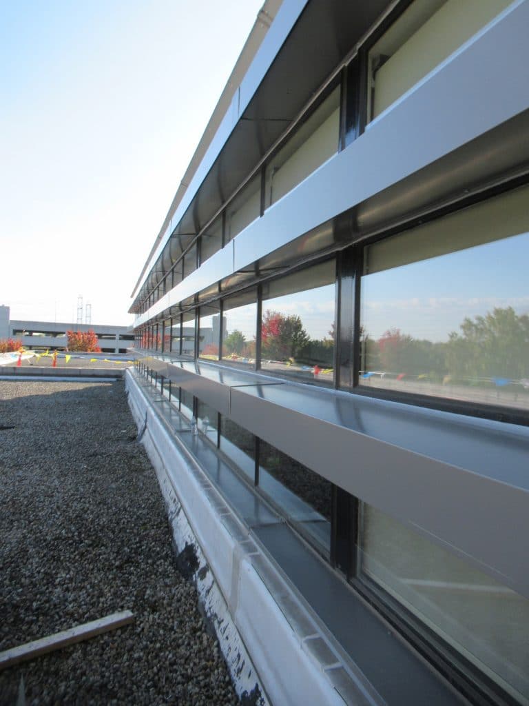 - Performing water testing at the ribbon windows, vertical strips of curtain wall at the cylindrical entrance, and at the metal cornice