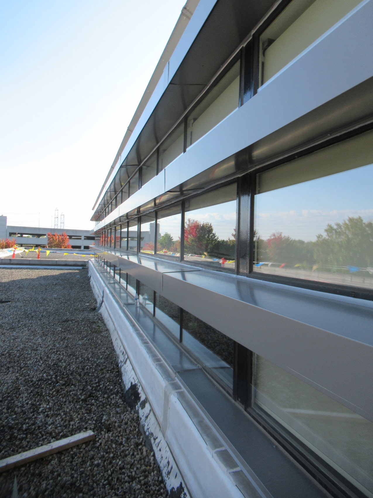 - Overcladding deteriorated wood trim jambs at the vertical strip windows, horizontal steel eyebrow projections at ribbon windows, and select cornice locations along the roof and penthouse with new metal panels