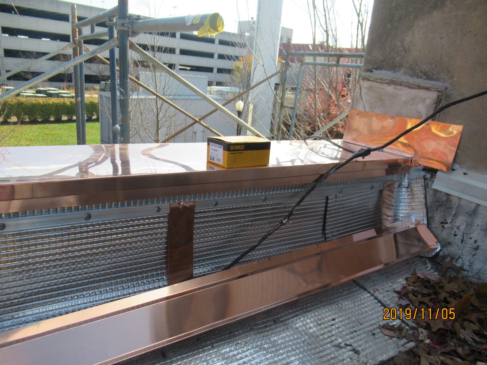 - Reconstructing the brick masonry parapet, including new copper through-wall flashing and roofing base flashing