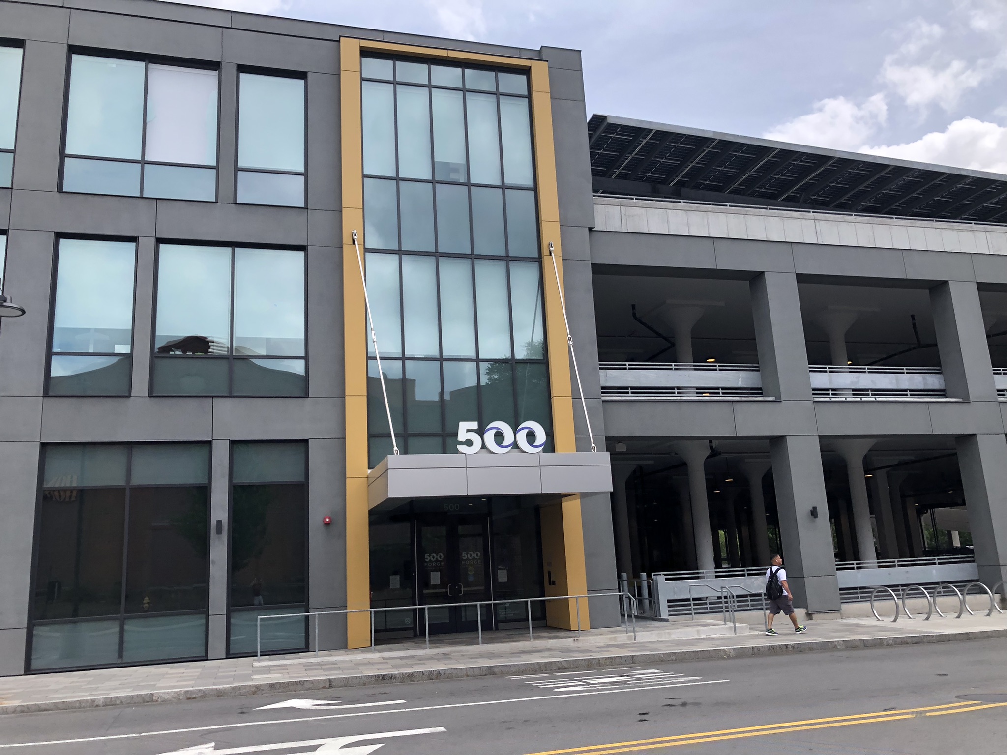 The two-story building at 500 Forge Road was originally constructed for the U.S. Army Arsenal in the 1940s and served as a warehouse with high‑capacity floors, tall stories, and closely spaced columns. Its original design called for a one-story vertical addition that was never constructed. After the U.S. Army decommissioned the building in the 1980s, it underwent several renovations, including converting portions to commercial uses with a semi-enclosed parking garage. As part of the mixed-use Arsenal Yards development, Boylston Properties wanted to repurpose and reposition the existing building to create 160,000 sq ft of life science laboratory and office space. SGH provided structural engineering consulting services for the renovation and additions.