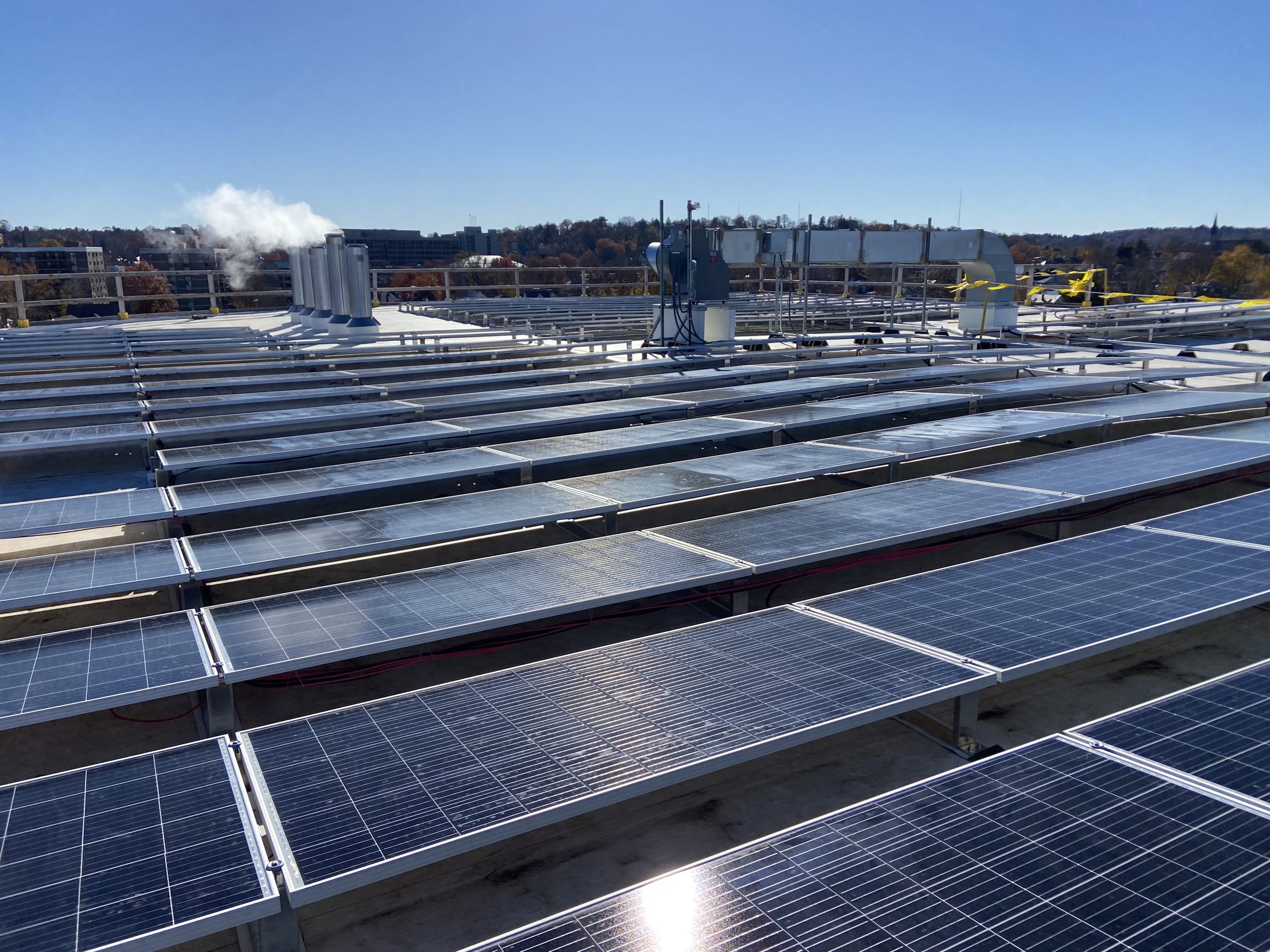 - A low-slope membrane roof with a 25,000 sq ft photovoltaic array that provides a significant portion of the building’s power