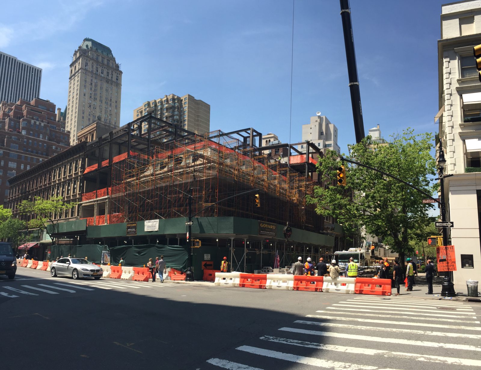 The retail development at 706 Madison Avenue is five above-grade and two below‑grade stories of new construction surrounding an existing landmark building. The project included preserving two street‑facing facades and a complete interior renovation of the 1920s bank building. SGH was the structural engineer for the project, including the retail fitout, and assisted with the building enclosure design.