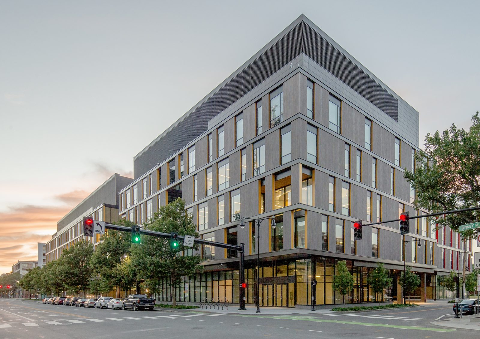 Occupying a full block in Kendall Square, 75 and 125 Binney Street offer leasable laboratory and office space. The two buildings are primarily clad with grooved precast panels, metal panels, and punched windows. SGH provided building enclosure consulting and commissioning services for the two buildings connected with a glass-enclosed pedestrian bridge.