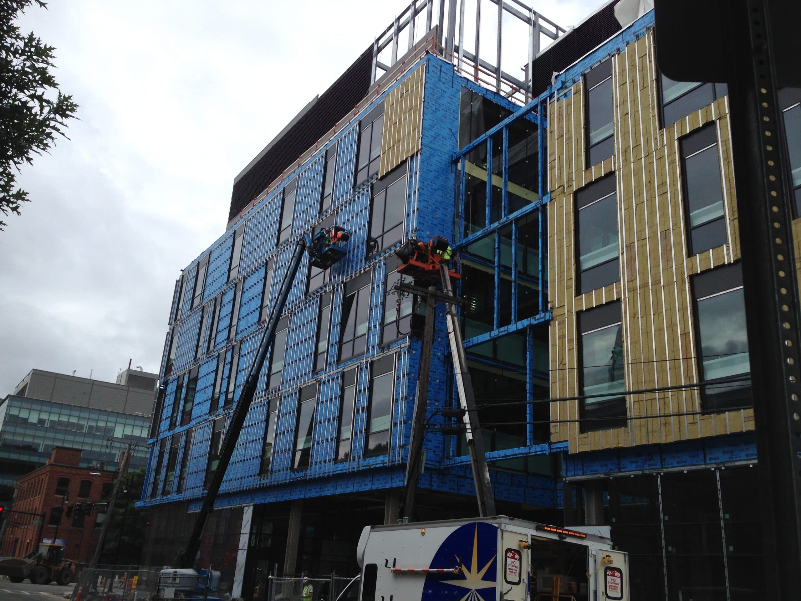 Since the project team developed shop drawings as part of the design-assist process, SGH focused on reviewing installation of the curtain wall and cladding systems during construction. We assisted with developing a mockup. Once the contractor installed waterproofing and fenestrations in the mockup, SGH performed air and water testing to compare with the project’s performance requirements. We helped the contractor troubleshoot installation issues and successfully avoid these issues on the building. The contractor then clad the mockup with the finish materials, so the project team could seek approval of the aesthetics by the City of Cambridge.