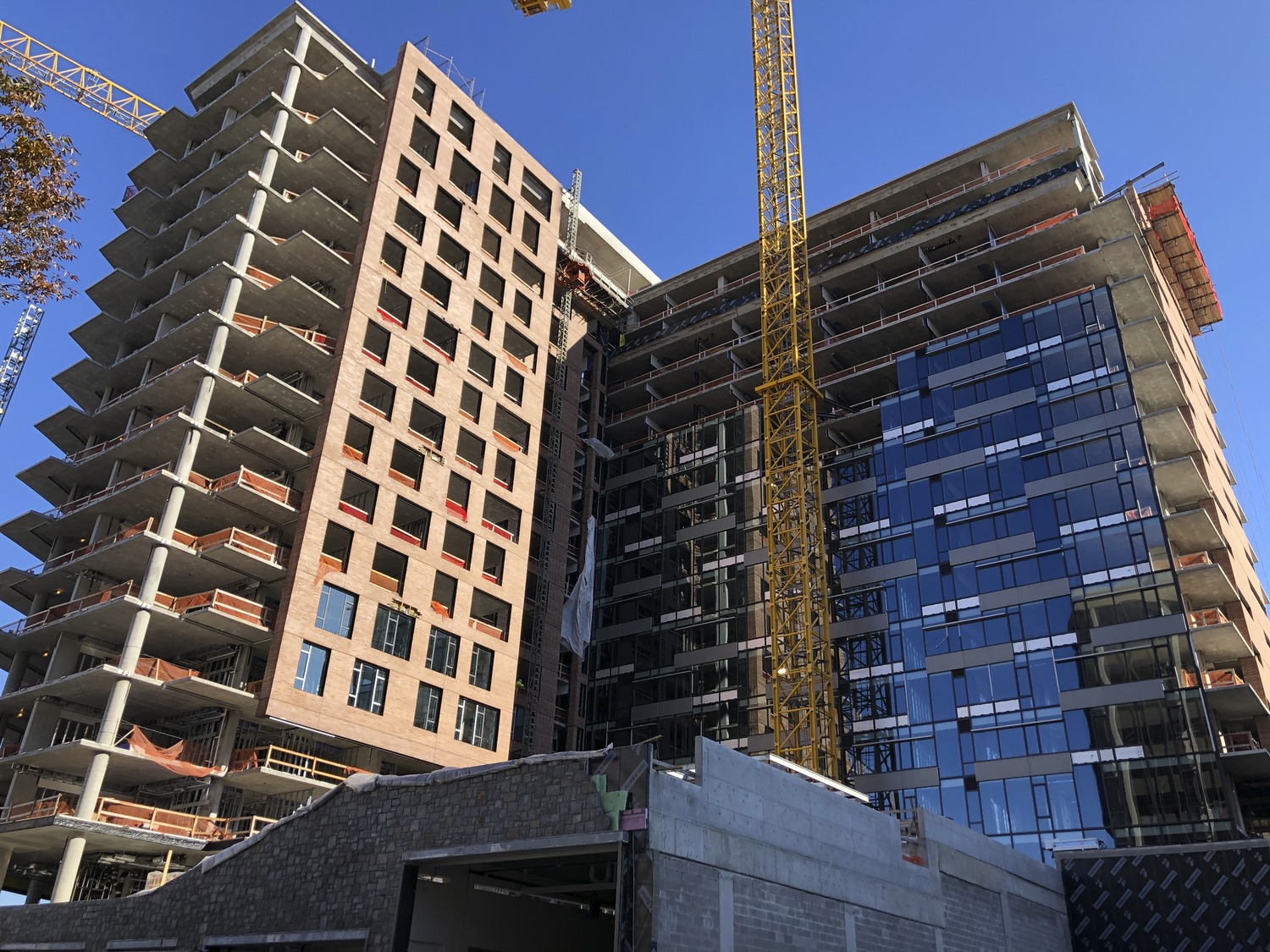 - Consulting on the design for the exterior walls, including a large curved facade comprising brick cladding, curtain walls with integrated perforated metal panels, and punched windows