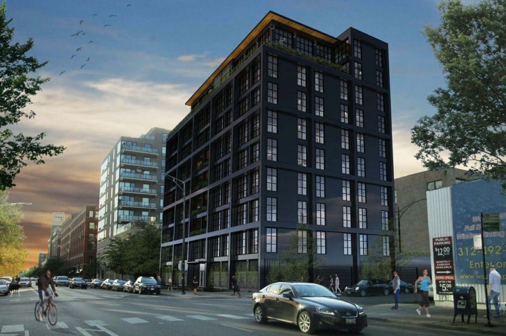 With its compact size and industrial aesthetics, 900 West blends with its West Loop neighborhood. The building includes twenty-two luxury condominiums, two penthouse units with city views, large private balconies, and enclosed parking at grade. SGH is the structural engineer of record and consulted on the building enclosure and hydronically heated concrete topping slabs.