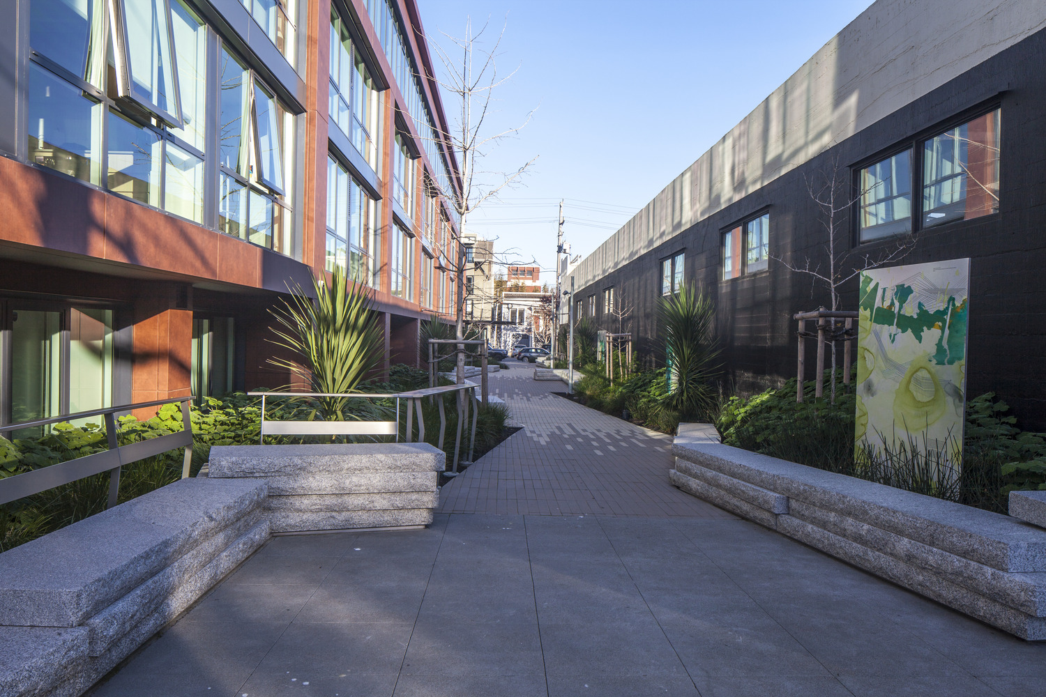 Located in the rapidly growing Dogpatch neighborhood, the new development at 950 Tennessee Street includes four stories of condominiums, ranging from studio to three-bedroom layouts. Residents enjoy amenities, such as landscaped courtyards, a dogwashing station, electric vehicle charging, and a rooftop terrace. The building facade features floor-to-ceiling windows and an aluminum and laminated panel cladding that add to the building’s industrial style, giving a nod to the area’s former warehouse community. SGH consulted on the building enclosure design for the project.
