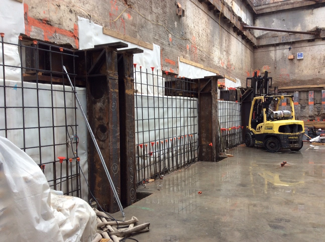 • Designing a steel corbel system to cantilever over the secant pile wall to support ten-story concrete columns at the building’s property line
