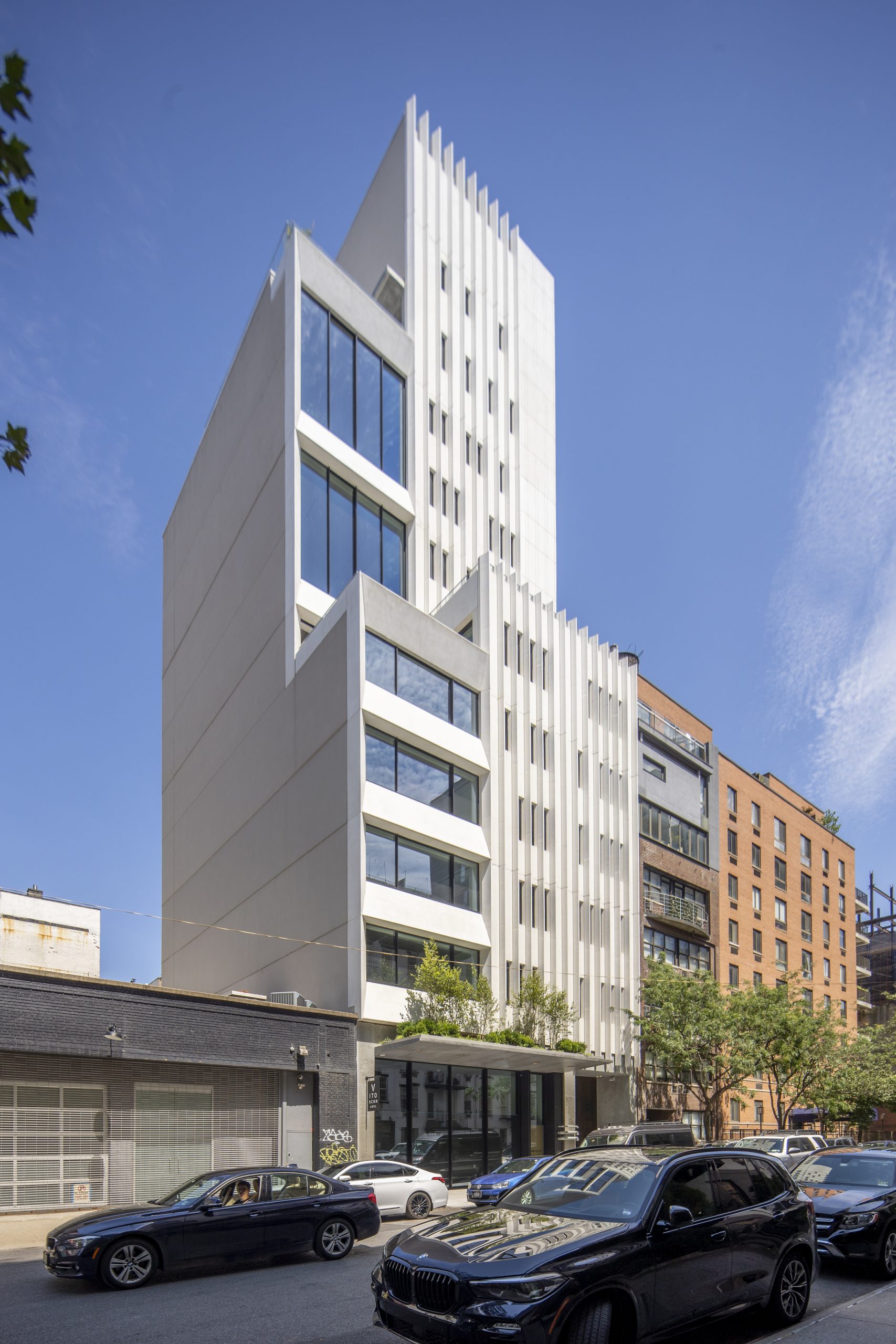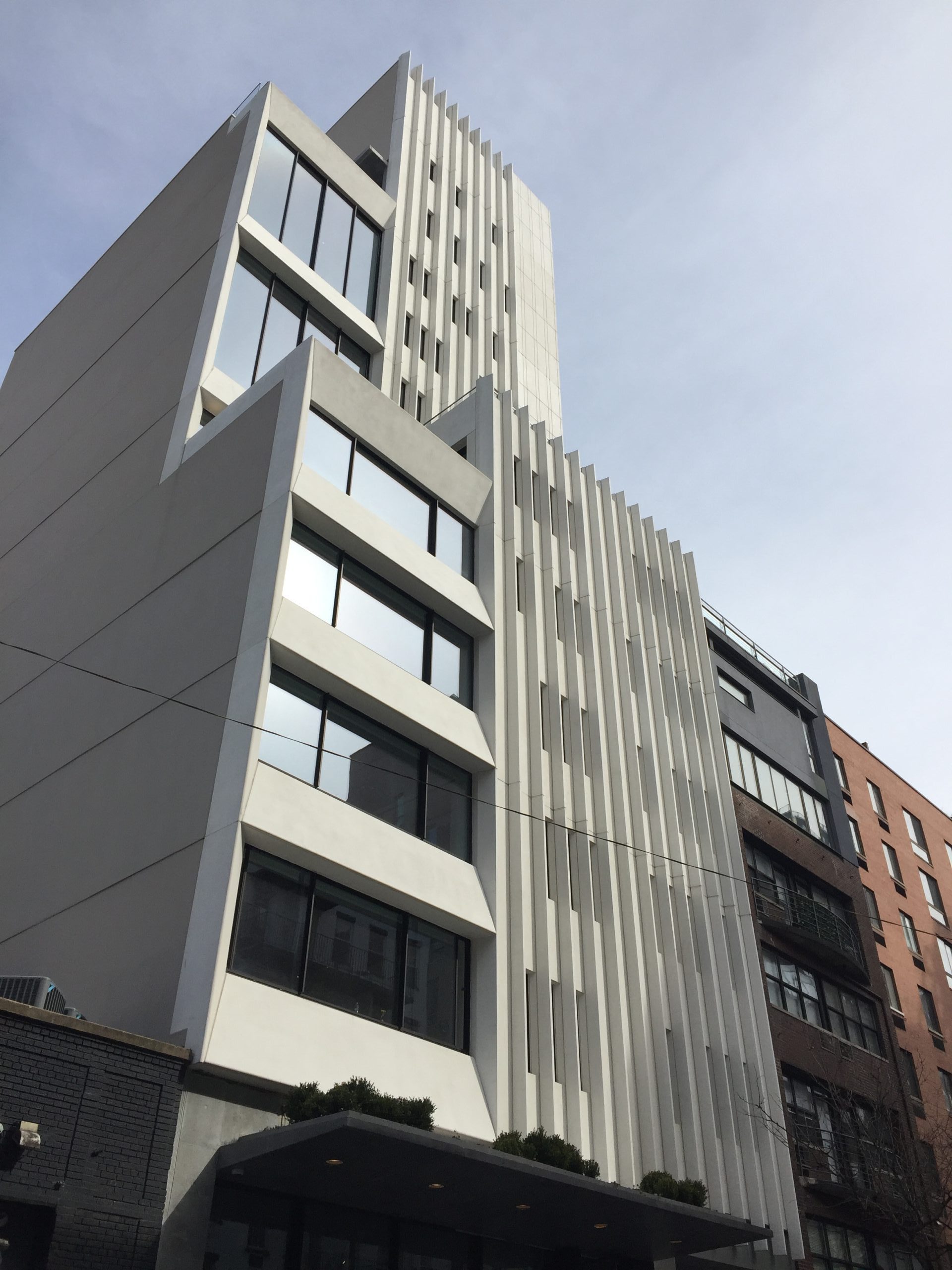 ABI Chelsea, a modern condominium building at 455 W. 19th Street in West Chelsea, features a striated facade and offers residents private balconies along with a common landscaped roof deck. SGH was the structural engineer of record, provided construction engineering services, and consulted on the building enclosure design for the project, which added eight stories to an existing single-story structure repurposed with first floor and below grade art galleries.