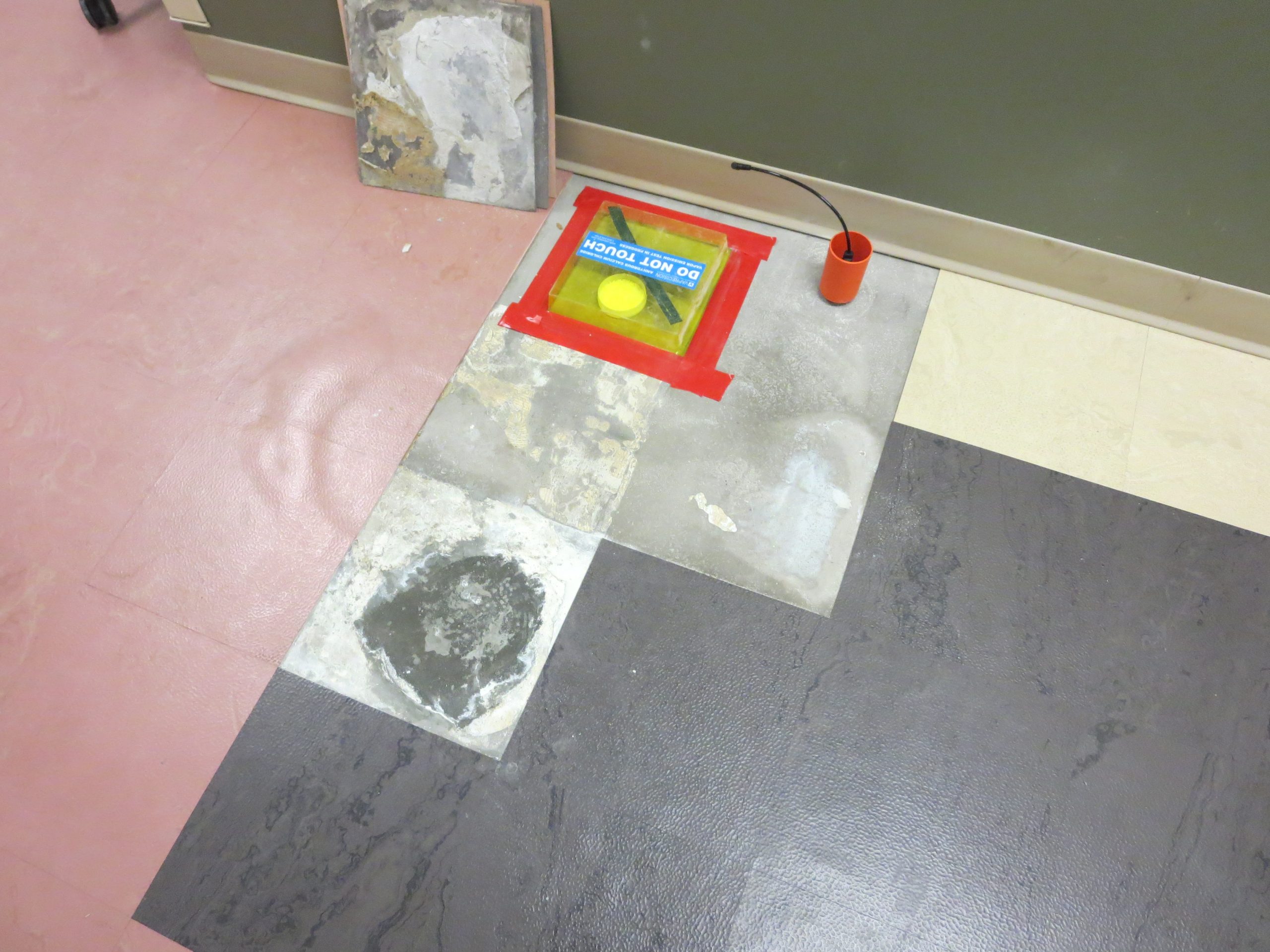 SGH visited the site to observe the flooring condition. We measured the relative humidity, vapor emission rate, and pH of the concrete slab. SGH collected cores and samples of the crushed stone layer below the slab. We performed the following testing in our laboratory: