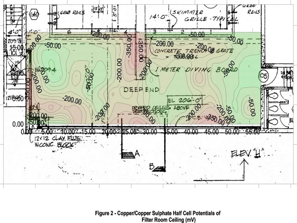 The building committee wanted to ensure that the natatorium would meet the requirements for the design life of the new school addition. SGH performed a review of the pool operations, a delamination and corrosion survey of the pool deck, and corrosion testing and chloride sampling of the precast concrete roof structure and cast-in-place concrete deck and pool walls.