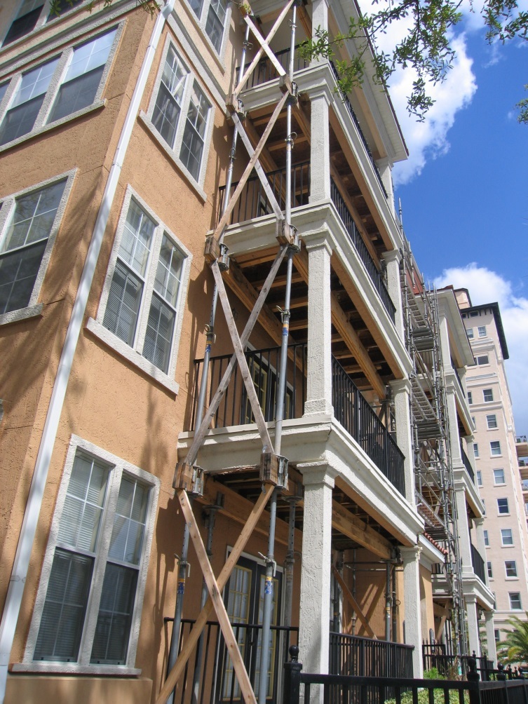 - Determined the balconies and walkways posed an imminent safety hazard and directed prompt installation of temporary shoring to stabilize these elements until permanent repairs could be designed and implemented