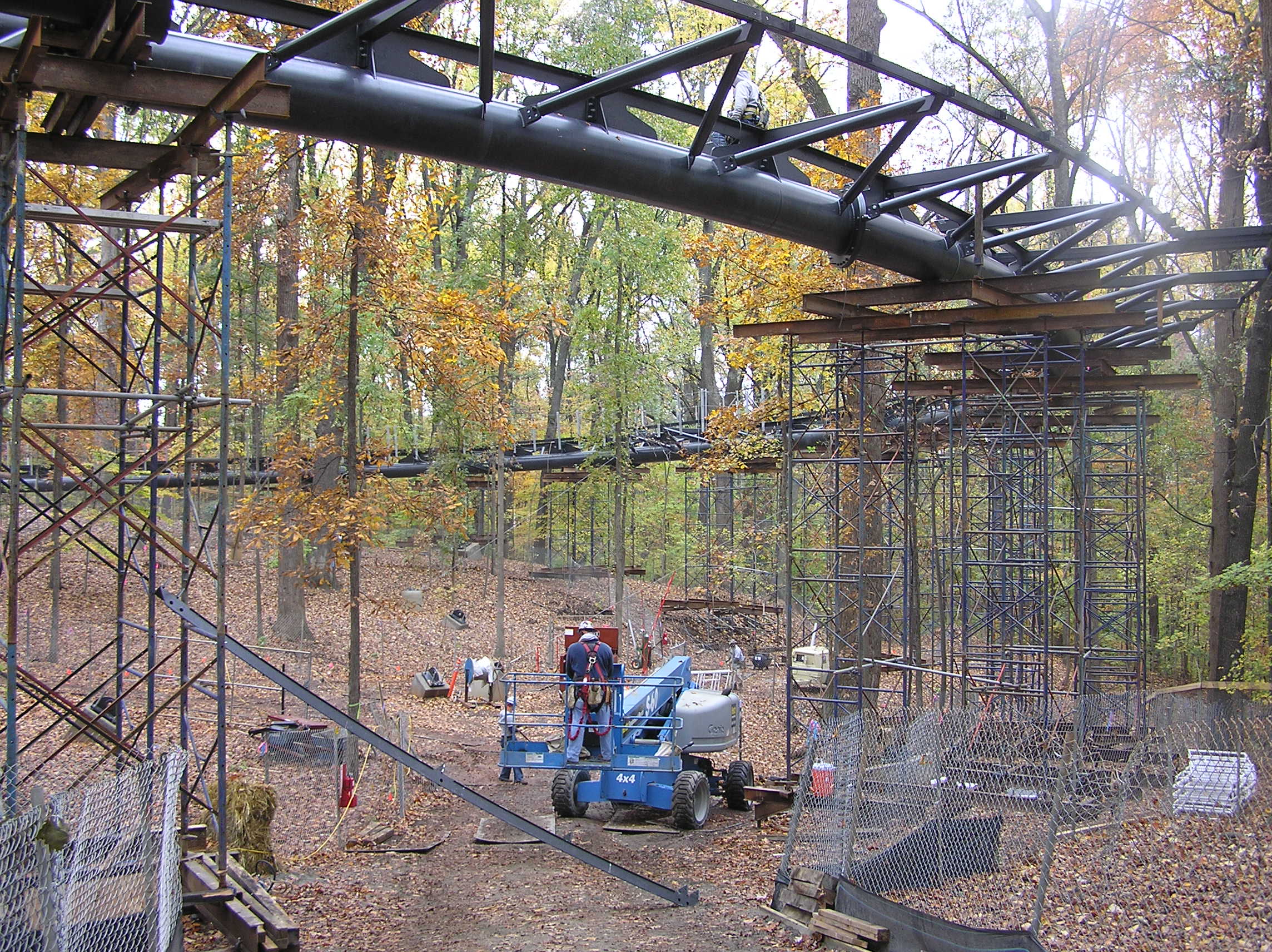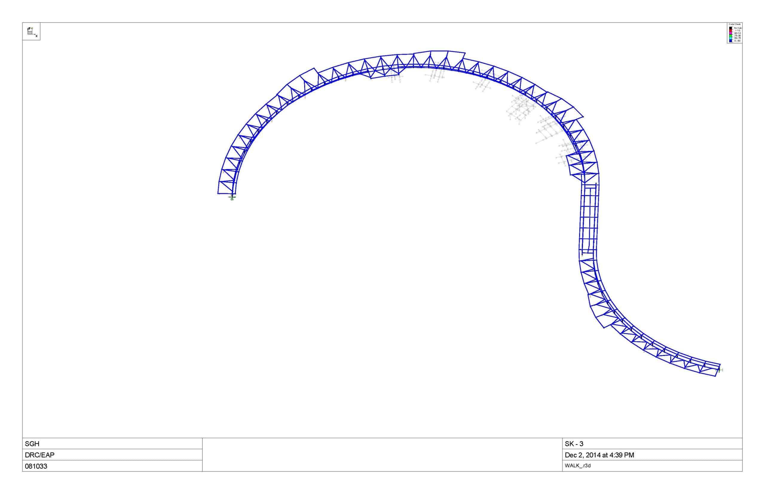 On 19 December 2008, a large portion of the S-shaped, steel-framed walkway under construction at the Atlanta Botanical Garden suddenly collapsed during concrete placement operations. The approximately 575 ft long, cable-stayed canopy bridge was designed to be supported by four masts along the curved spline segments and two opposing inclined columns at the transitional straight spline segments. At the time of collapse, the walkway structure was supported on temporary shoring tower frames and helical piles. SGH investigated the cause of the collapse.