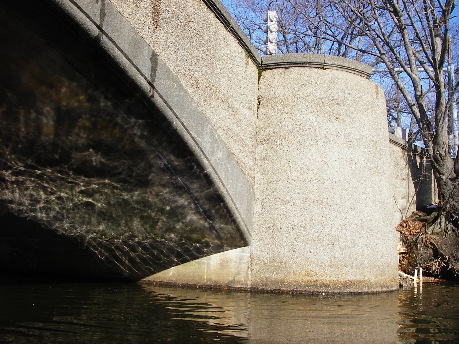 The Auburn Street Bridge spans the Mystic River. Constructed in 1906, the single-span concrete arch bridge has abutments that act as large-spread footings. Undermining of the abutments and wing walls caused by scour, raised concerns that the bridge would not be able to survive a 500-year flood. As part of an on-call engineering services contract with the Commonwealth of Massachusetts Department of Conservation and Recreation, SGH evaluated potential scour effects and designed countermeasures to protect the bridge foundation during extreme floods.