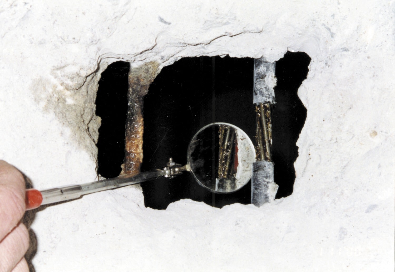 - A pachometer survey to spot check the placement and cover over reinforcement