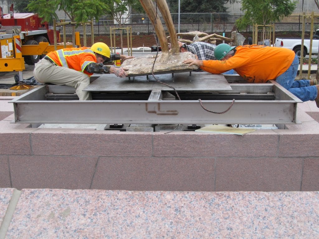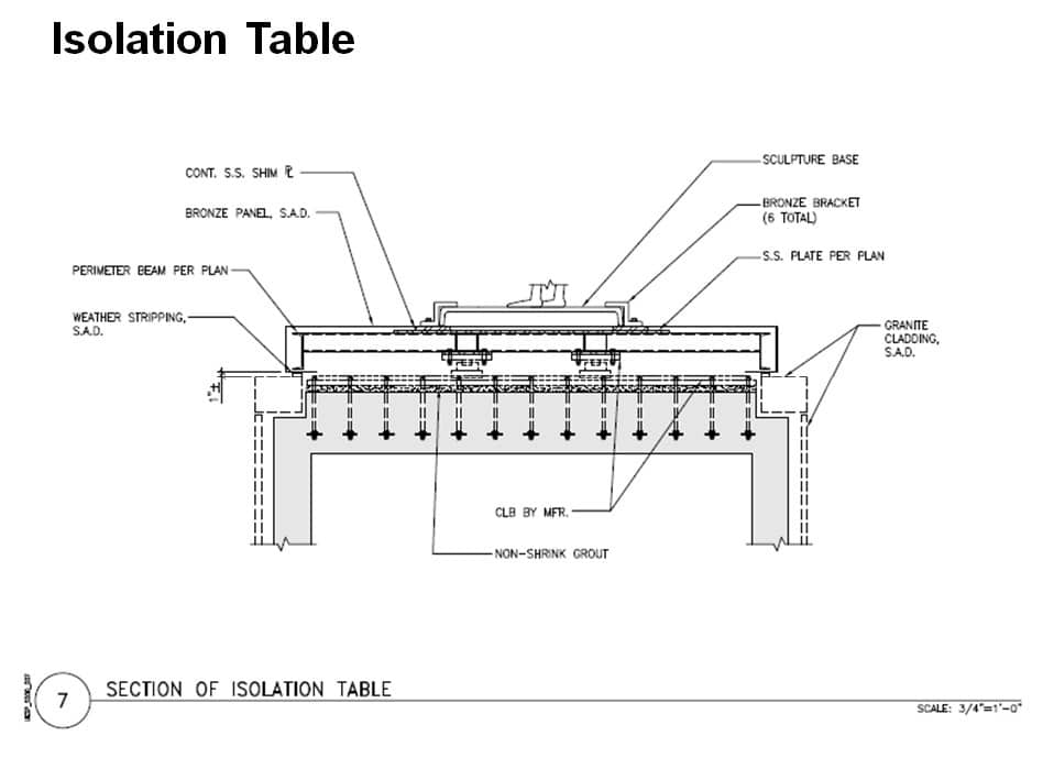 Through the use of isolated platforms we were able to provide the architect and City an elegant solution to protecting their civic sculptures from earthquake damage.