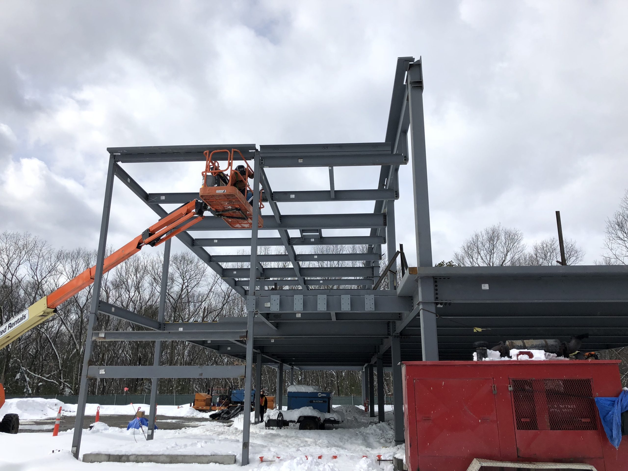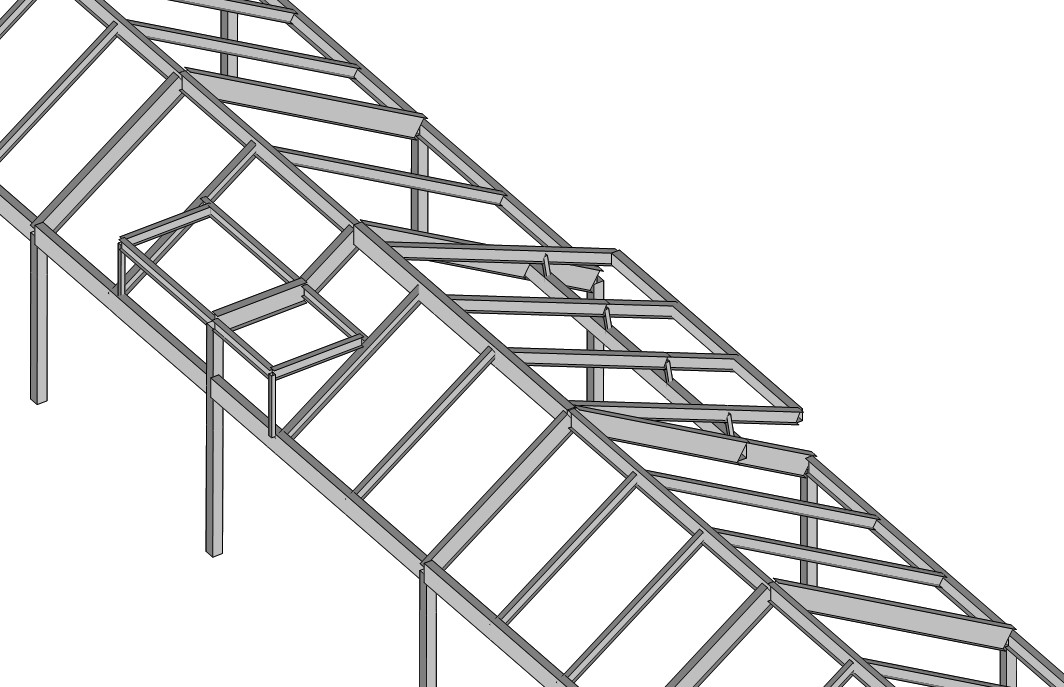 - Hollow structural section (HSS) columns for moment frames at both the flat and gable shaped roof areas