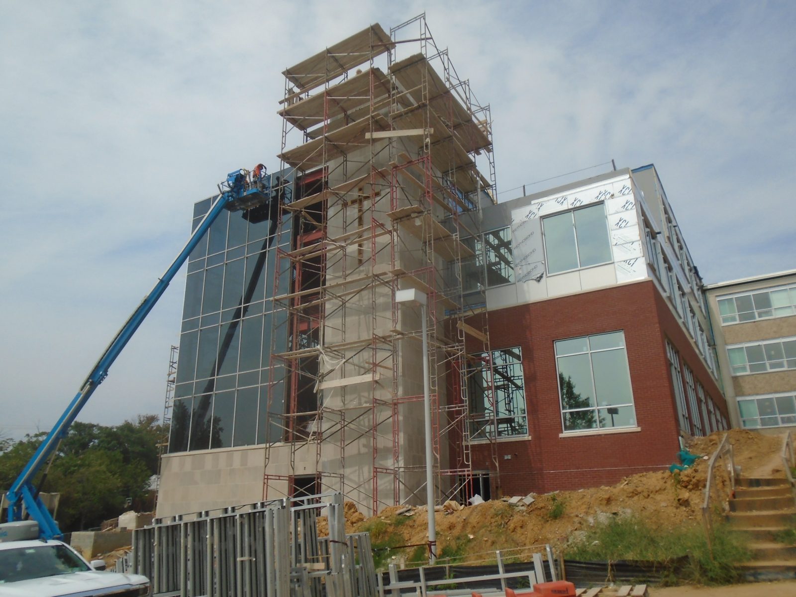 - Reviewing the design for below-grade waterproofing, exterior walls clad with brick and natural stone masonry, metal panel rainscreens, aluminum-framed windows and curtain walls, waterproofing for the second floor terrace, low-slope and vegetative roofing assemblies, and the glass-enclosed stairwell