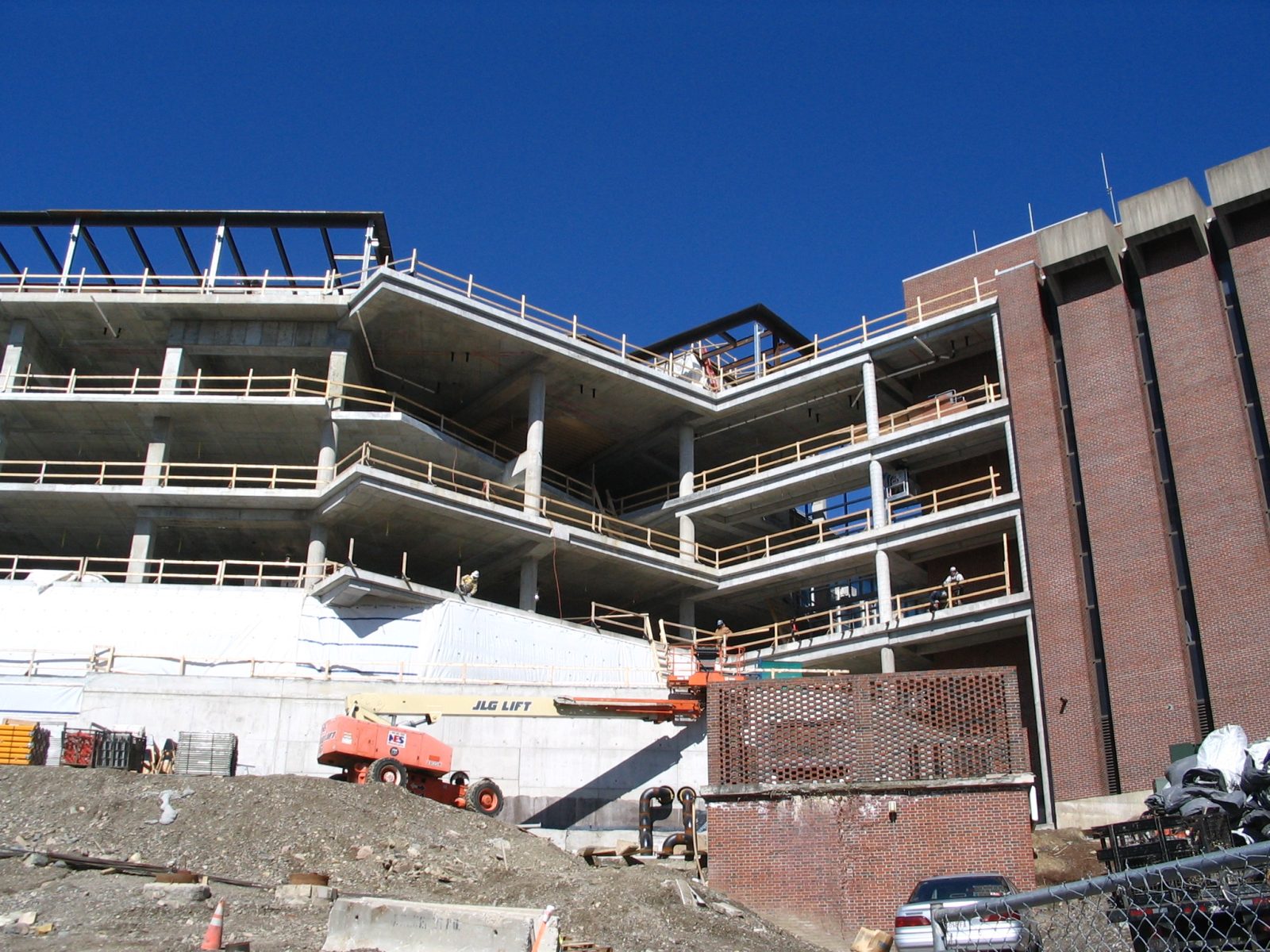 SGH designed a superstructure that is primarily cast-in-place, reinforced concrete with flat-plate floor slabs and reinforced concrete shear walls as the lateral-load-resisting system. With a reinforced concrete system, we were able to match floor elevations with the adjoining concrete-framed buildings. As part of our analysis, we evaluated issues related to adjacent structures, such as seismic racking and foundation undermining.