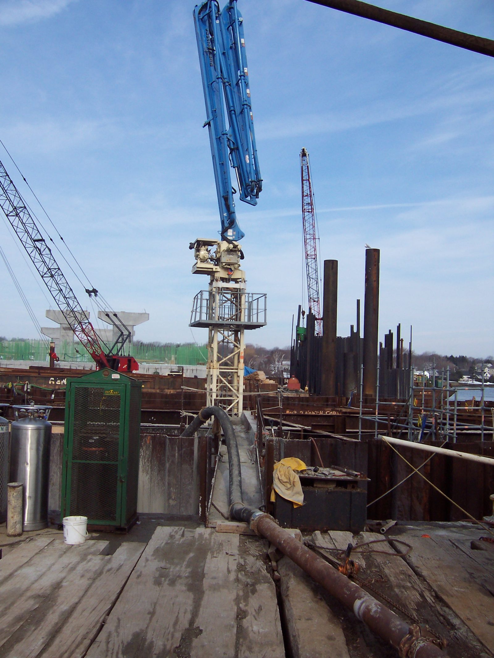 - Plugged concrete pumplines during placement of the east bascule pier pile cap in cold weather