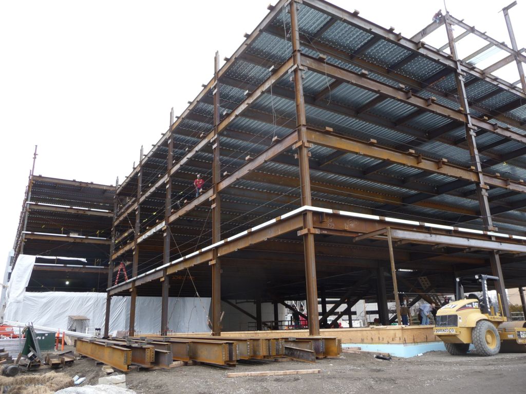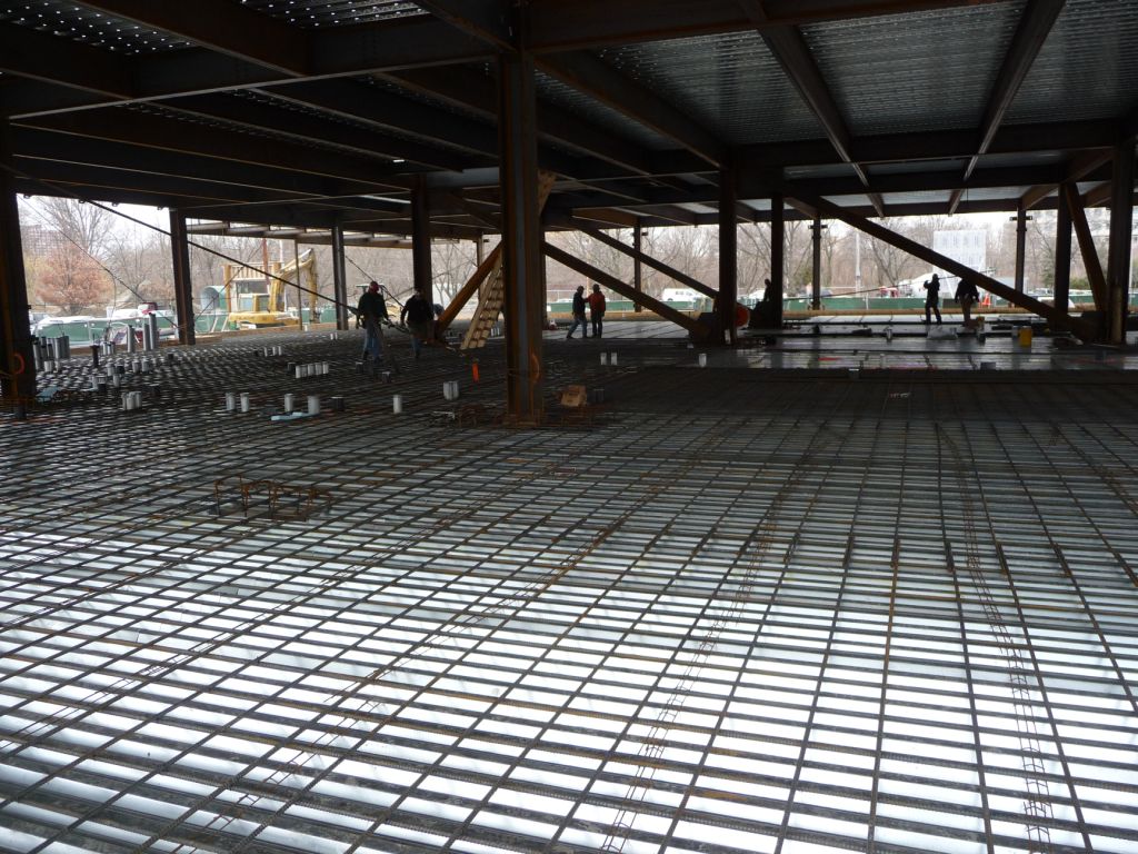 - Steel-framed structure with braced frames in both directions for lateral load resistance and concrete slabs on a composite metal deck