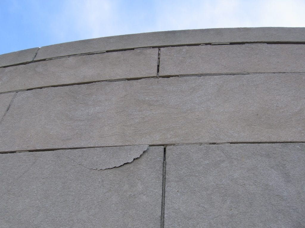 - Limestone Facade. Our restoration design included reconstruction of distressed parapets and arches, replacement of deteriorated lintels, repairs to address spalls at anchors, pointing deteriorated mortar joints, restoration cleaning, and incorporation of new flashing with drip edges to improve durability and minimize future staining.