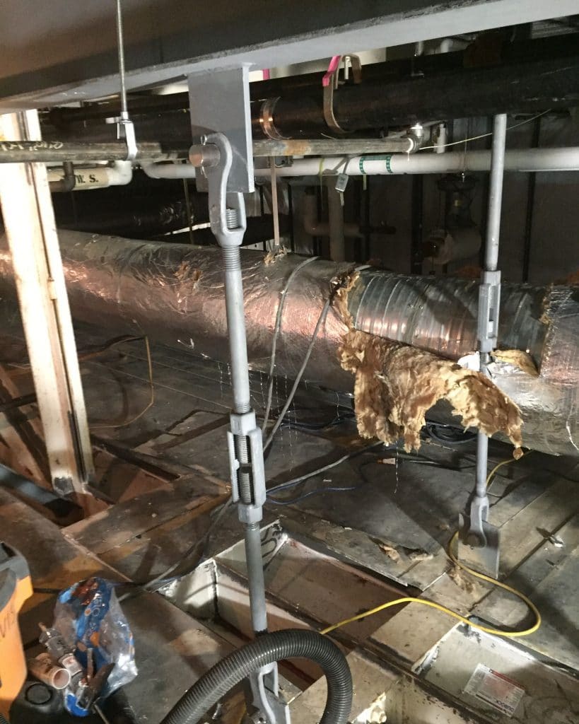 - Designed structural strengthening using supplemental framing members that could be transported to the roof on elevators or through small openings in the curtain wall and installed in the crowded interstitial space