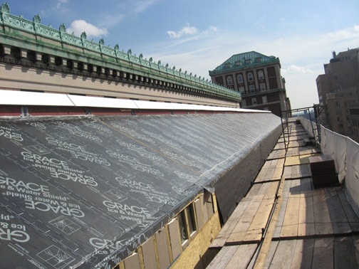 Our work included design of copper standing-seam wall panels and flashings at rising masonry walls, parapets, stone copings, and cornice gutters. We investigated water leakage into the Rare Books and Manuscripts Library (RBML) and designed repairs to the existing skylights and replacement of the existing standing-seam copper roofing and wall cladding.