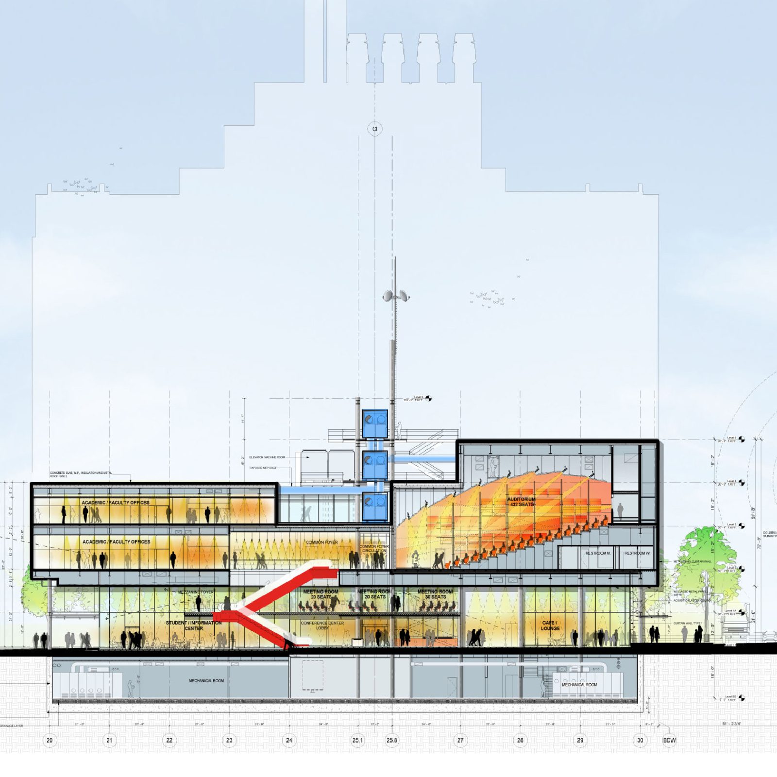 SGH assisted Dattner Architects with the Academic Conference Center (upper left). The building, also known as the Bow Tie, was designed by Renzo Piano Building Workshop. Highlights of our work include the following: