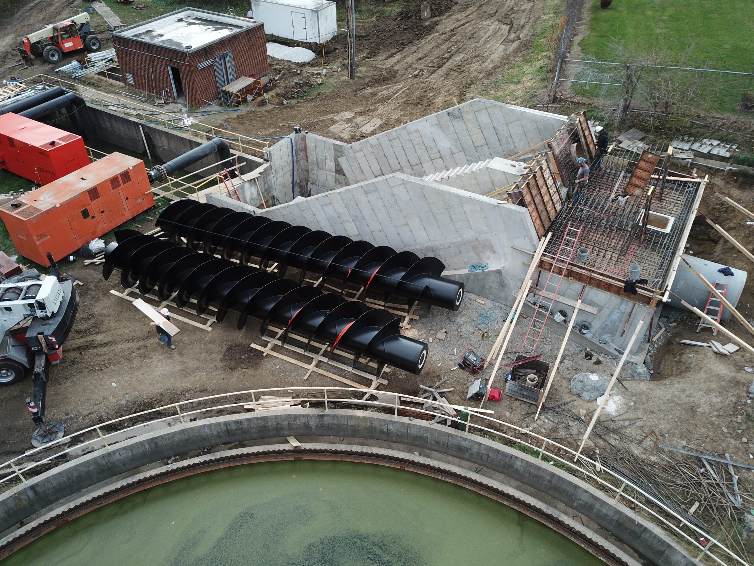 - Evaluating existing site conditions and designing sloped concrete foundations for the two new 102 in. dia. screw pumps with a 70 million gallon/day capacity
