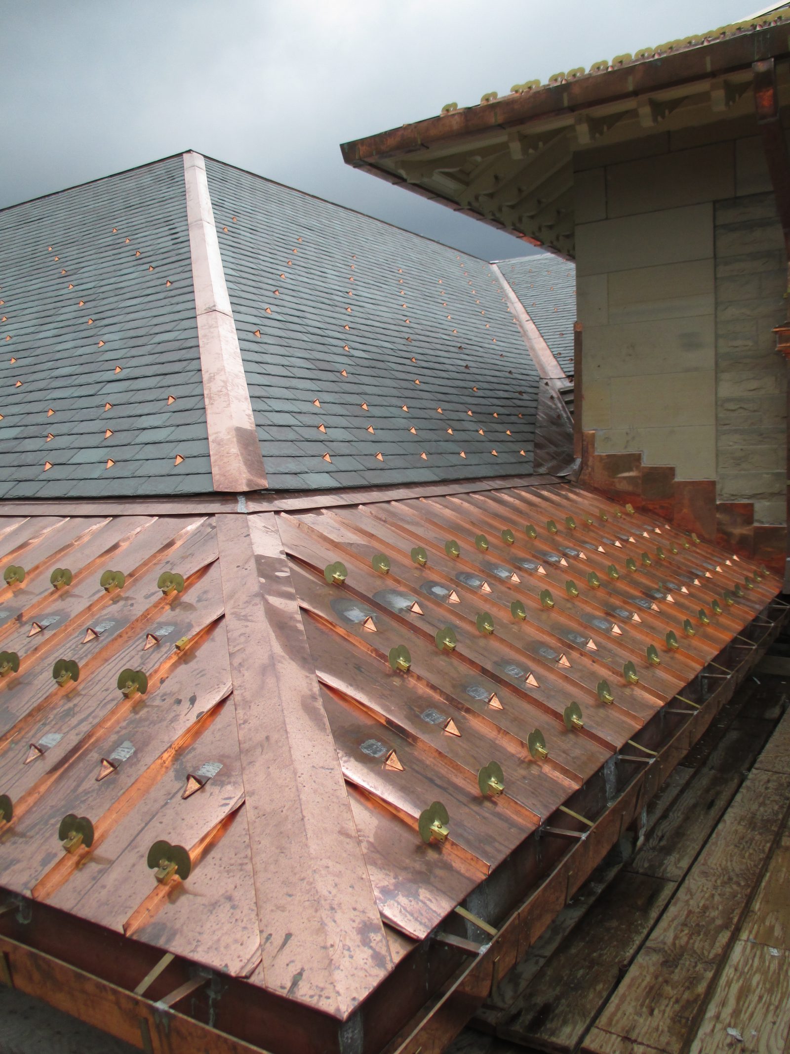 SGH evaluated the existing roof conditions in order to design a replacement roof that would address the existing performance problems. We analyzed the existing timber and steel truss roof structure to determine if the structure could safely support the increase in load from the proposed replacement slate and metal roofing system. Our rehabilitation program included the following work that was reviewed by the Ithaca Landmarks Preservation Commission:
