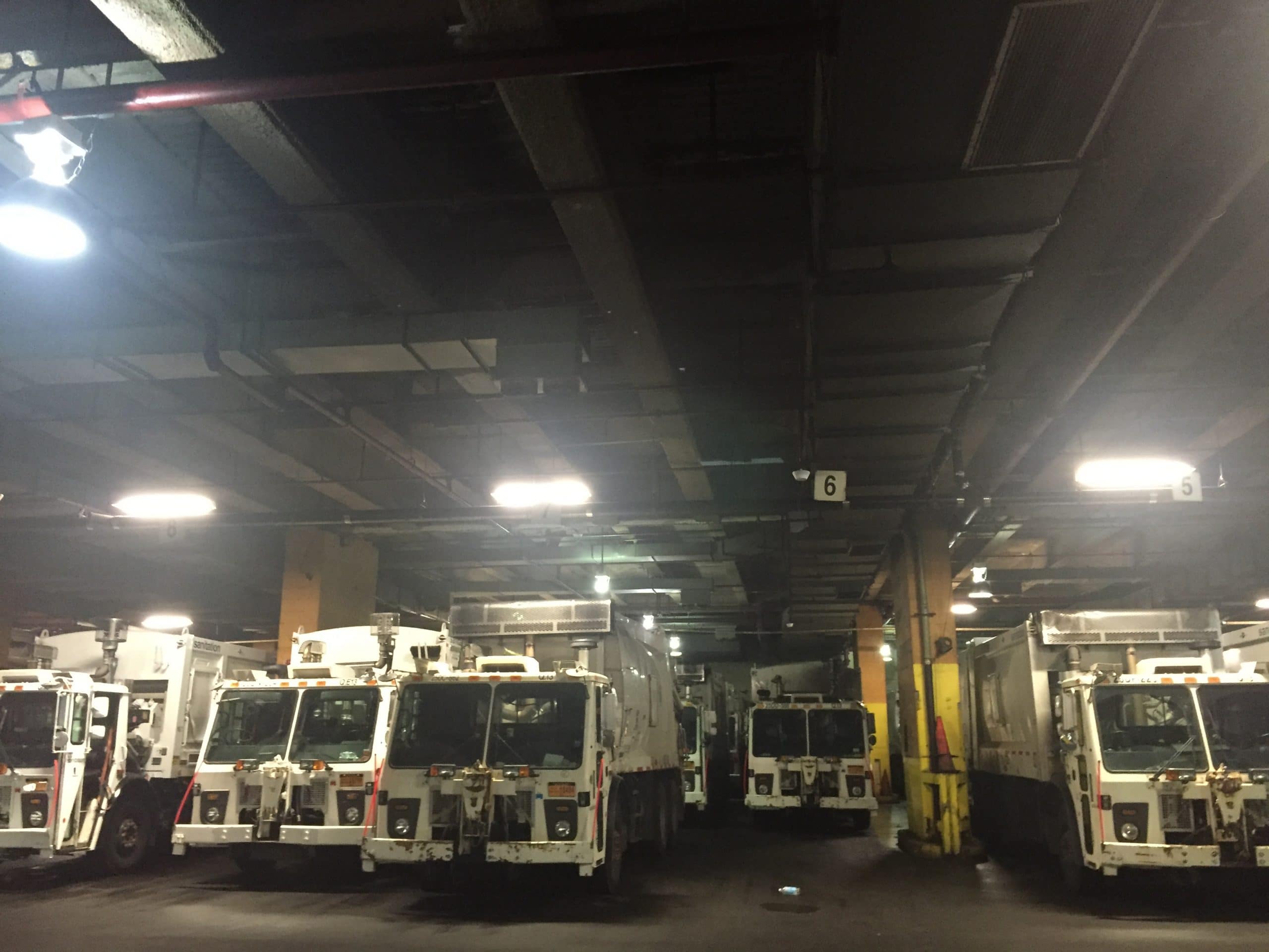 The garage houses two floors of vehicle parking for the New York City Department of Sanitation (DSNY) and three floors of office space. The steel-framed structure needed substantial work to address deterioration, increase the loading capacity for heavier trucks, and upgrade the lateral-load-resisting system. SGH designed structural repairs and upgrades for the garage.