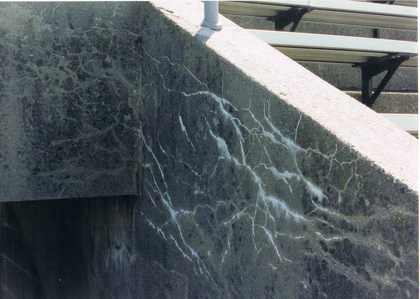 SGH inspected the waterproofing, joints, precast concrete, and cast-in-place concrete and removed samples from the stadium for materials testing and petrographic examination. We found widespread waterproofing failures and areas of moderate to severe concrete deterioration caused by reinforcement corrosion, cyclic freezing and thawing, and aggregate reactions. We identified certain connections between the precast and cast-in-place elements to be inadequate. Our work was included in further studies of the stadium that eventually led to its rehabilitation.