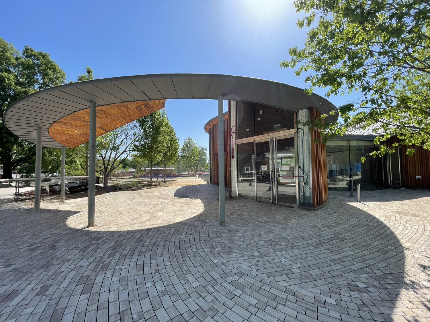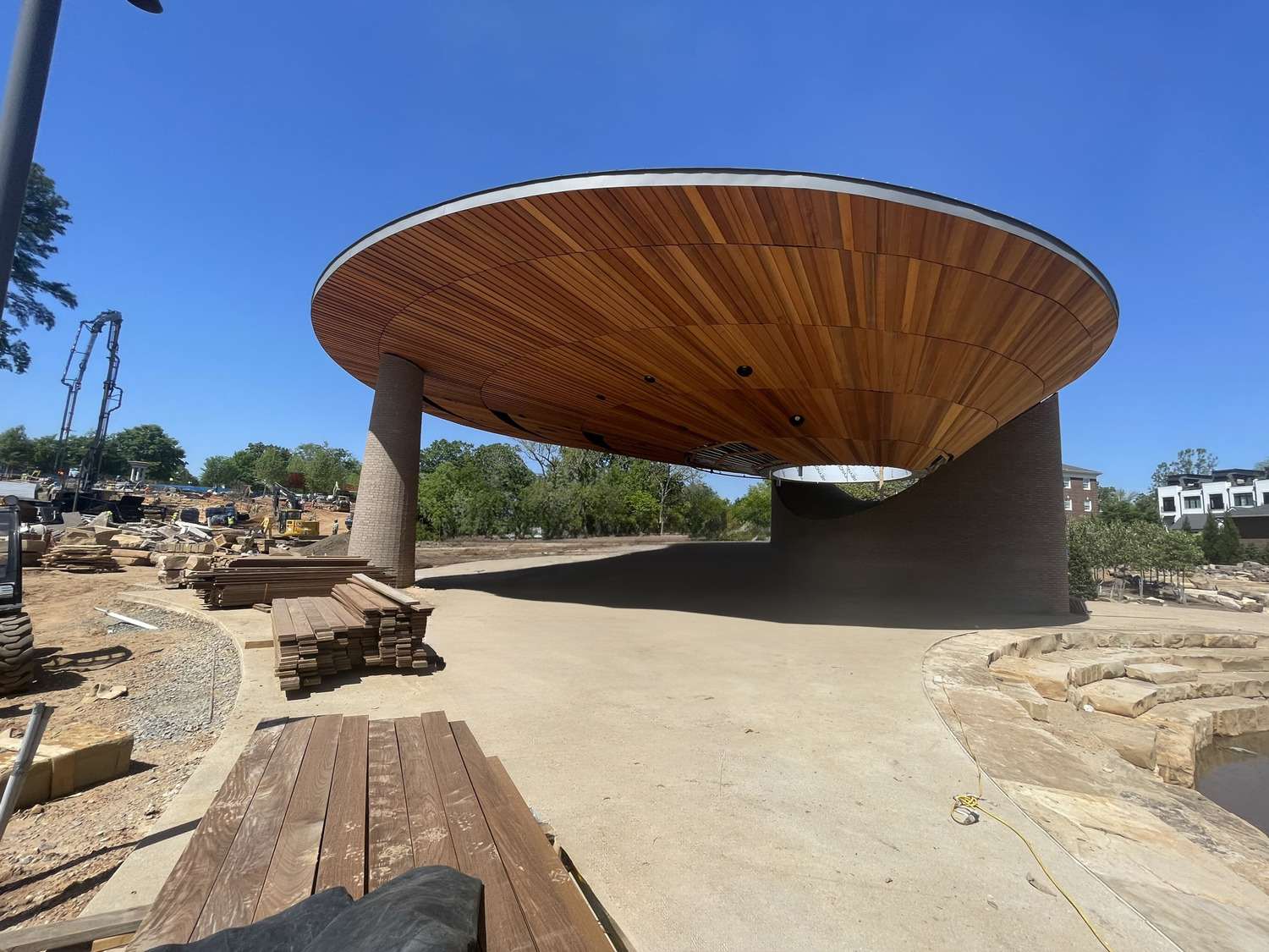 - Great Lawn Pavilion is a performance venue in the center of the park. The steel-framed roof is an inverted cone supported at just three reinforced concrete columns and relying on a large mat foundation to resist overturning due to the cantilevered geometry.