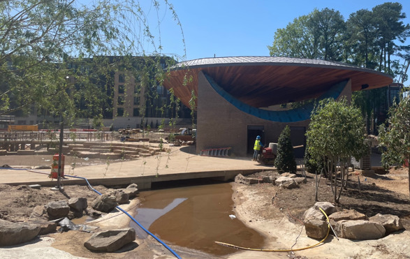 Encompassing seven acres in the center of Cary, North Carolina, the park includes winding paths that carry visitors between outdoor features—such as children’s play areas, game courts, gardens, and a dog park—and to interior spaces like the marketplace, gathering house, and special event pavilion. Six bridges link the paths and structures. SGH worked with the landscape architect OJB and architect Machado Silvetti on many of the park’s key structures, including the bridges.