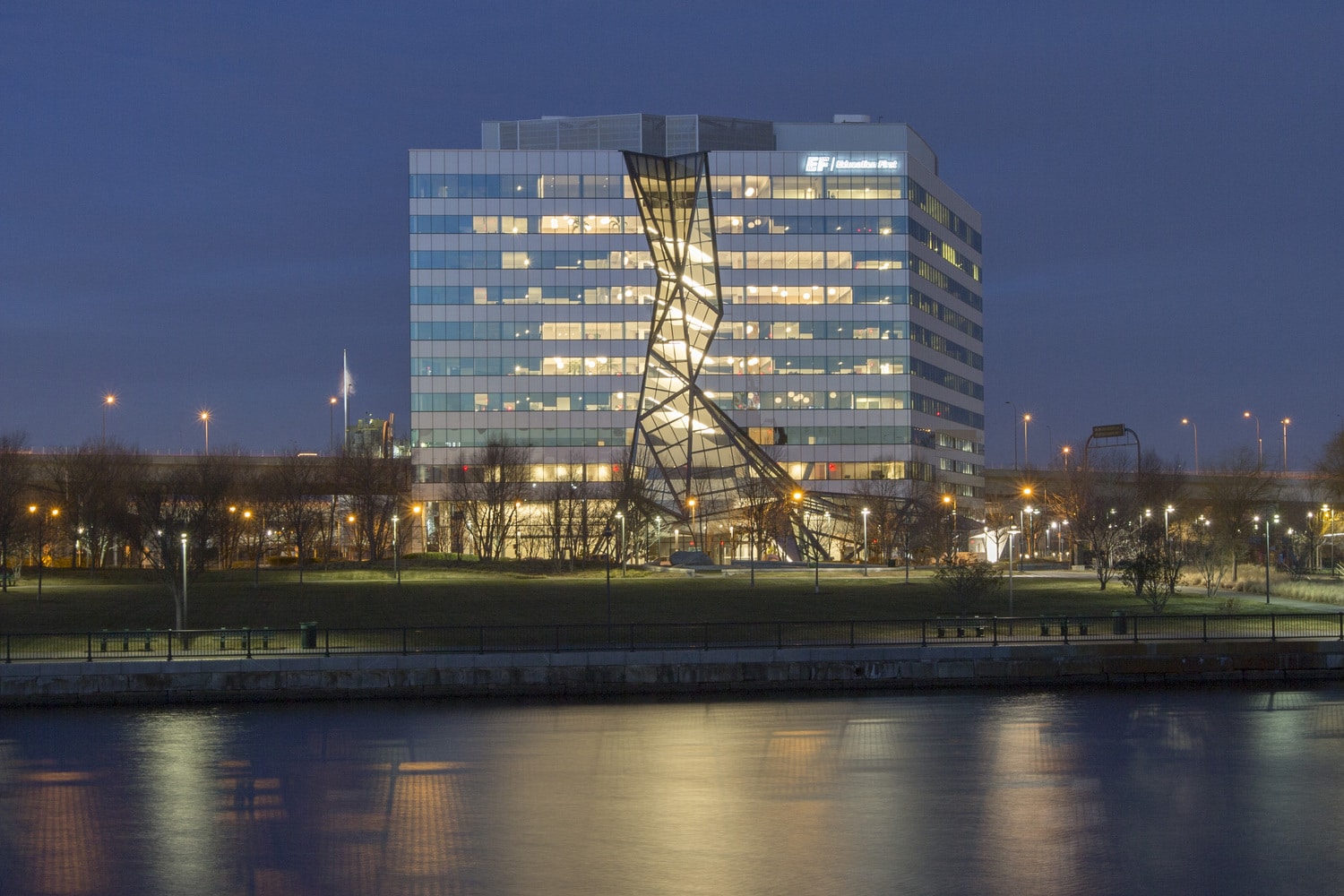 Once the site of an old rail yard and industrial buildings, the NorthPoint redevelopment now houses modern residential and office towers and the associated amenities. The ten-story Education First (EF) building is a focal point of the neighborhood with its modern facade and striking glass waterfall. SGH consulted on the building enclosure design for the waterfall feature.
