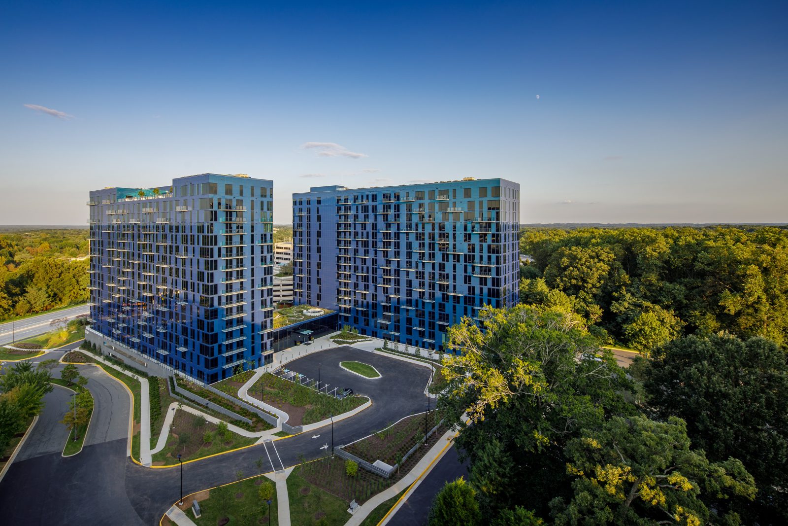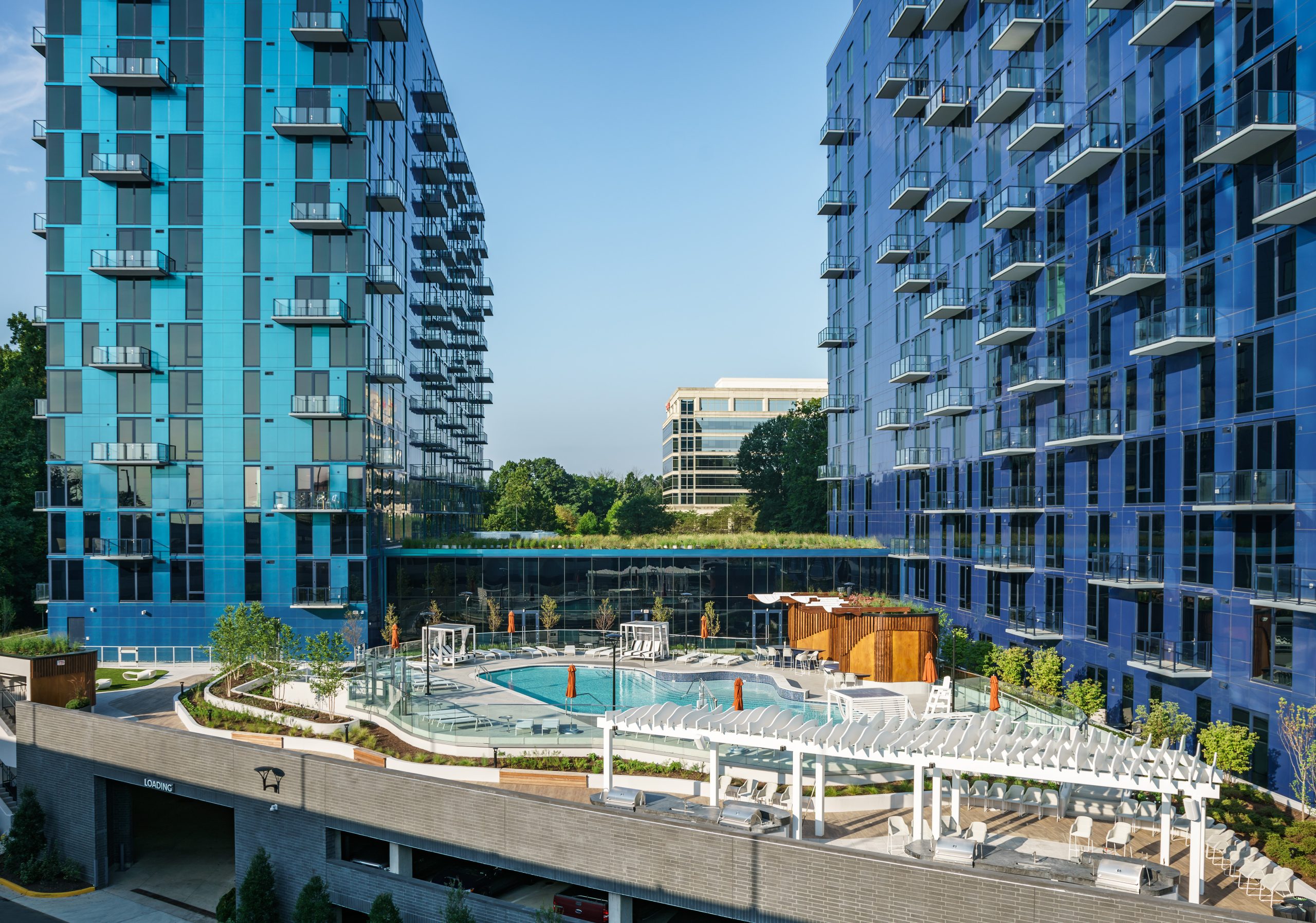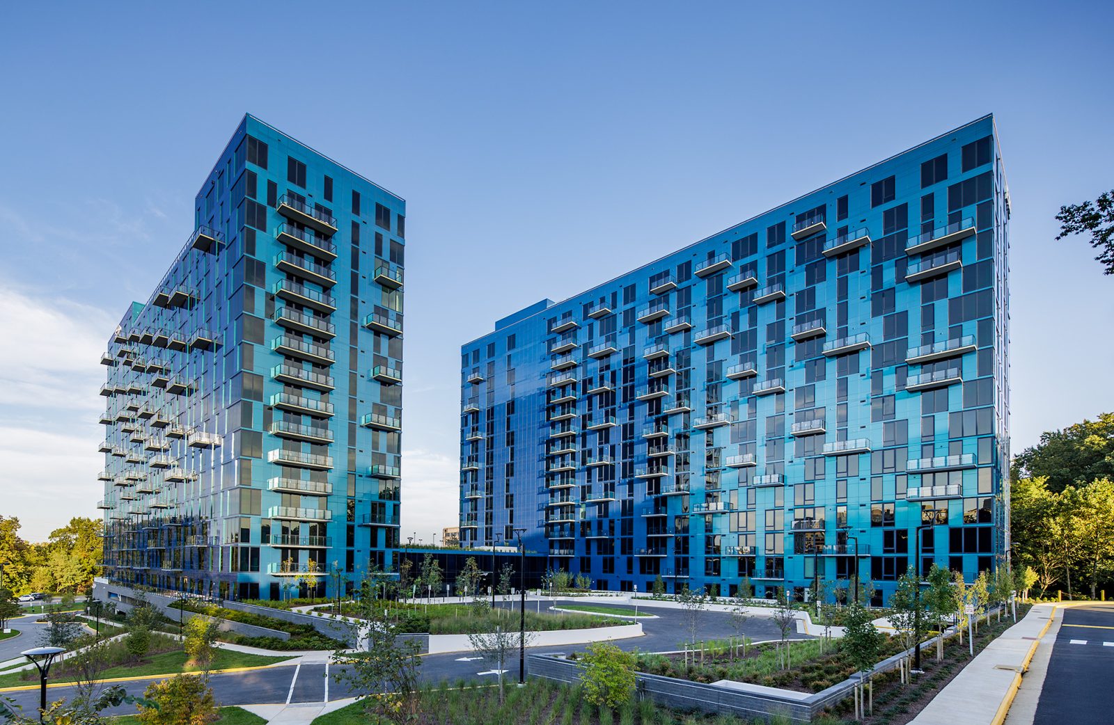 EXO includes two high-rise residential towers with a linking building connecting them. The towers feature one of the nation’s largest applications of electrochromic glass, which responds dynamically to maximize daylight, reduce glare, and optimize heat gain. The development offers tenants numerous amenities, including a community plaza with a swimming pool, penthouse lounges, a rooftop terrace, a fitness center, and private balconies. SGH consulted on the building enclosure design.