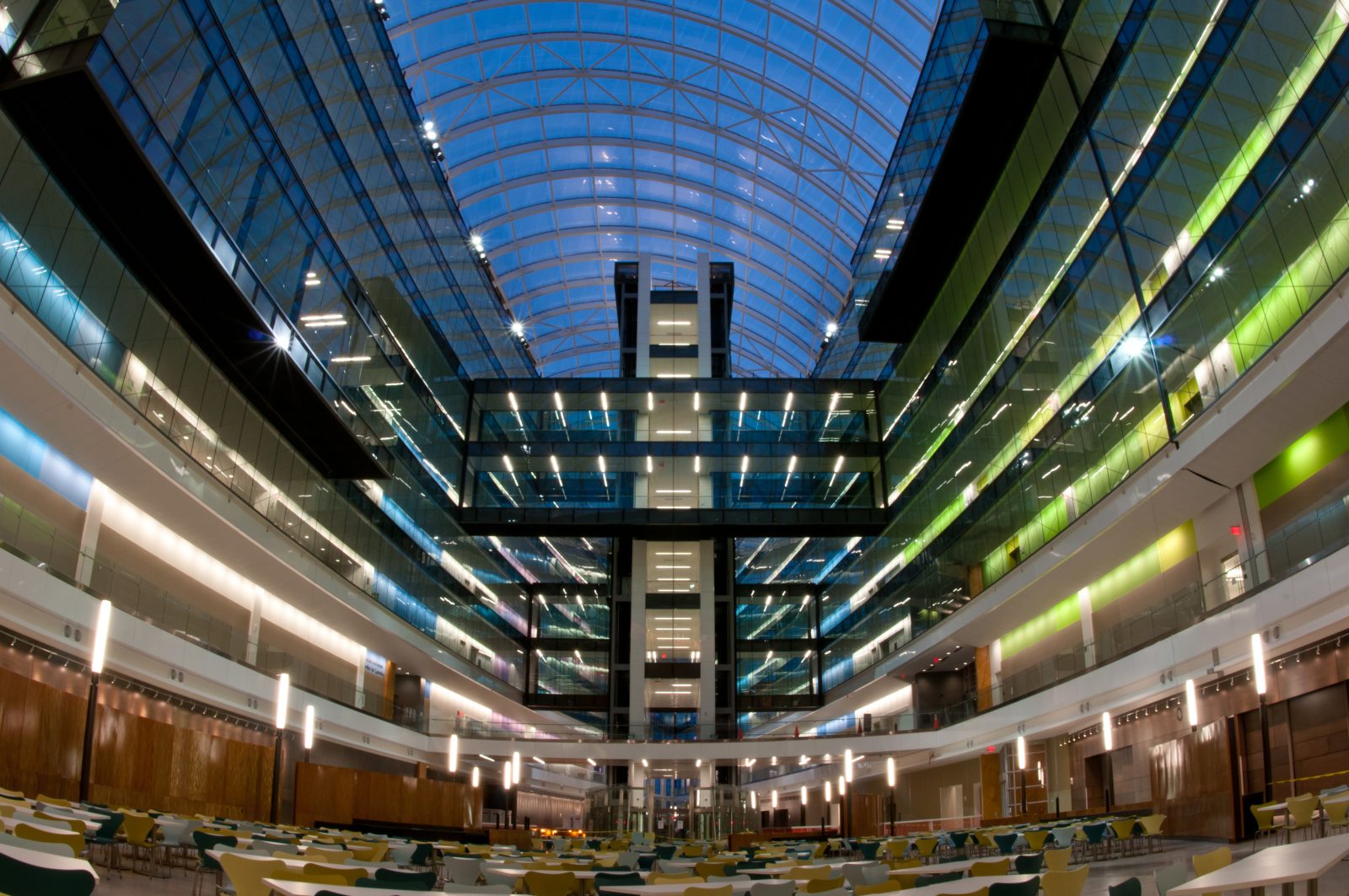 As one of the largest U.S. government facilities in the Washington, DC area, New Campus East consolidates six agency locations as part of the Defense Base Realignment and Closure program. The new campus includes a 2.2 million sq ft, eight-story office building for 8,500 workers, a 105,000 sq ft central utility plant, a 5,100-space parking garage, and a 7,300 sq ft visitor control center. Working with the joint venture of Clark/Balfour Beatty, SGH consulted on the building enclosure design and construction.